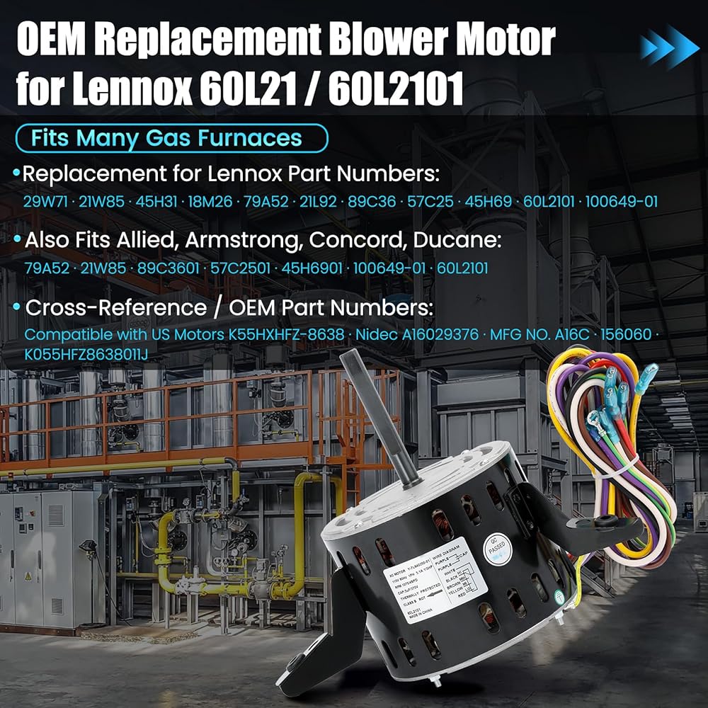 【Direct Replacement】Replacement for Lennox part numbers 60L21, 60L2101, 29W71, 21W85 and compatible with Armstrong, Ducane, Allied, Concord models. Fits US Motors K55HXHFZ-8638 and similar OEM parts for wide application.