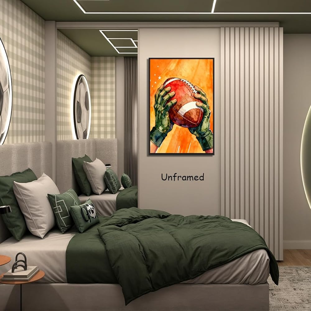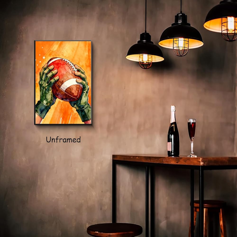 TOCDGOO American Football Watercolor Poster - 16x24 Inch Unframed Inspirational Wall Art, Hands Holding Football Canvas Print for Sports Fans Game Room Man Cave Decor