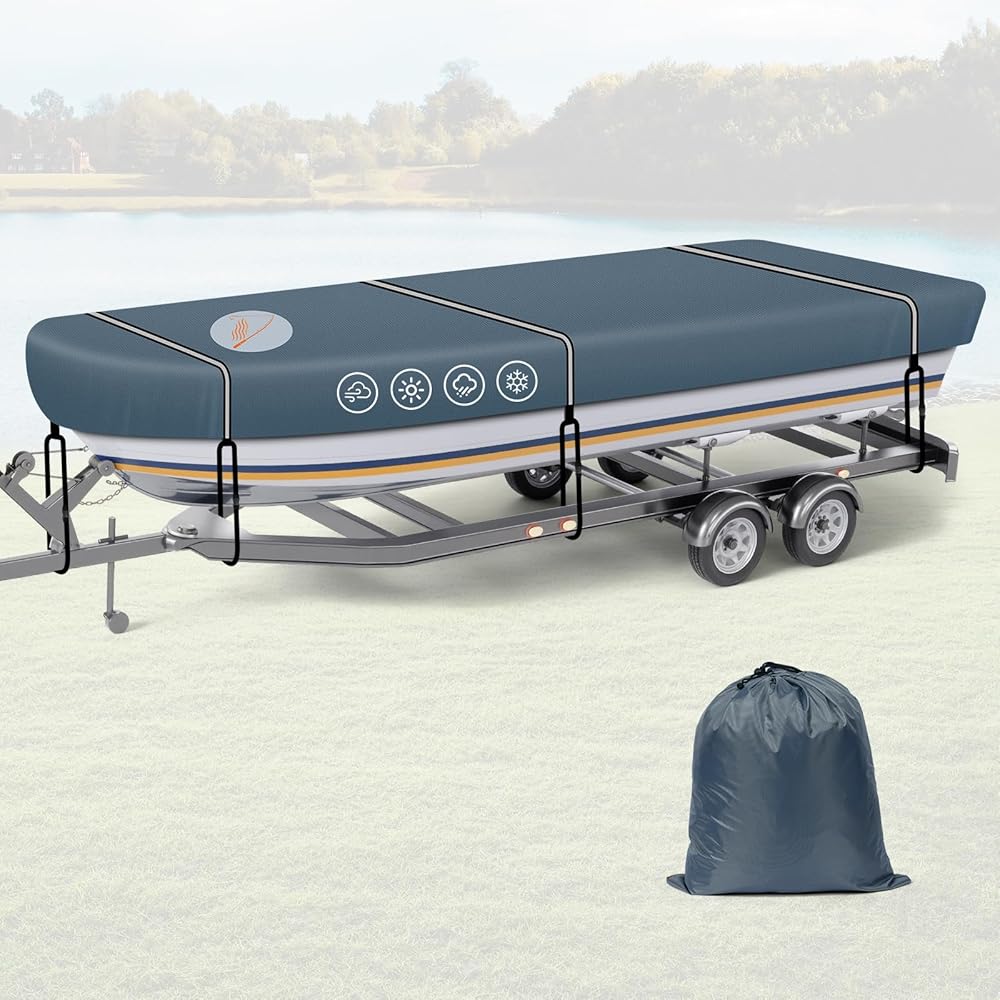 【Easy Installation & Storage】Thoughtful construction allows for quick installation and removal, so you can cover your jon boat in just minutes. When not in use, the boat cover folds compactly into the included storage bag, saving space and making storage simple and hassle-free.
