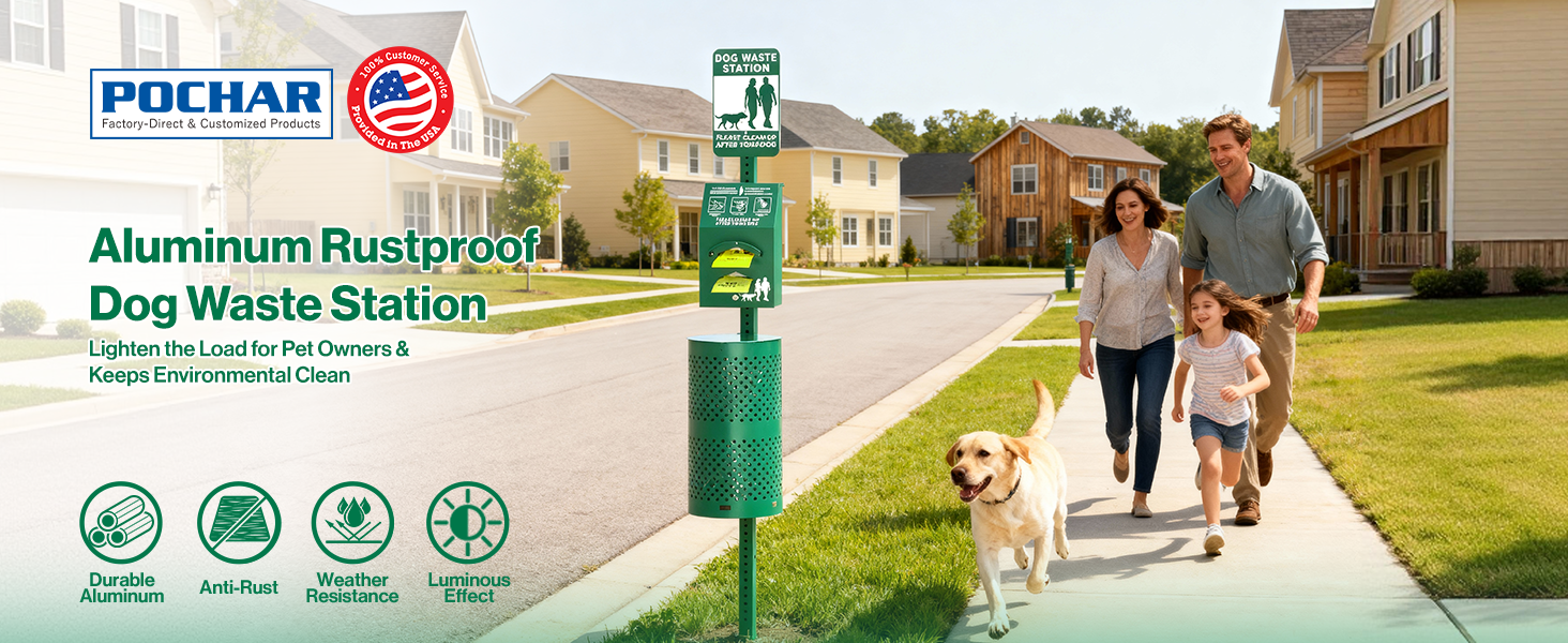 POCHAR Dog Waste Station Outdoor, Aluminum Rustproof Pet Poop Station with 600 Waste Bags & 50 Can Liners, Dog Park Equipment with Sign & Lid - Pet Poop Disposal System for Backyard