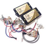 Wiring Harness Configuration: Includes a 3-way toggle switch, 4 potentiometers (2x A500K, 2x B500K), and a jack. Supports 2V2T (2 Volume, 2 Tone) configurations.