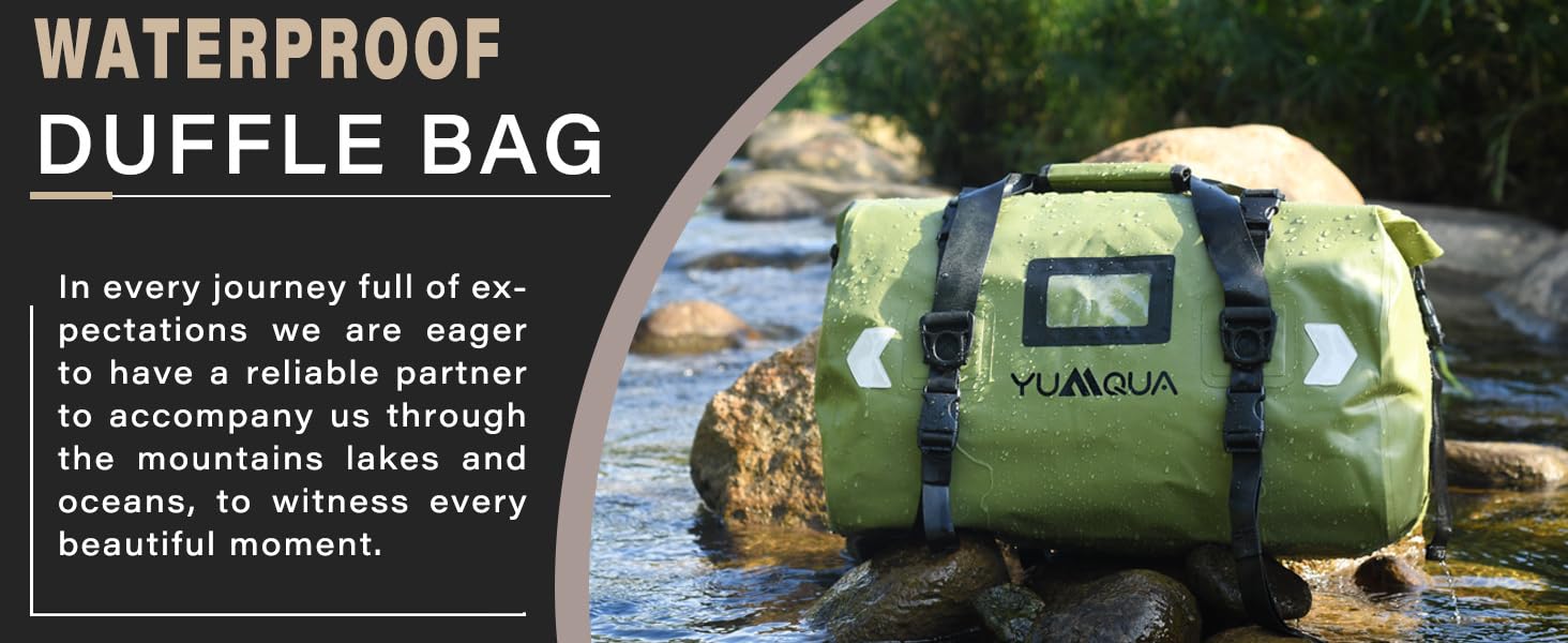 YUMQUA Waterproof Duffel Bag with transparent window and durable straps offers a reliable, spacious, versatile storage solution for outdoor enthusiasts, travelers. Ideal for water sports, travel, camping, outdoor adventures, gym and etc.