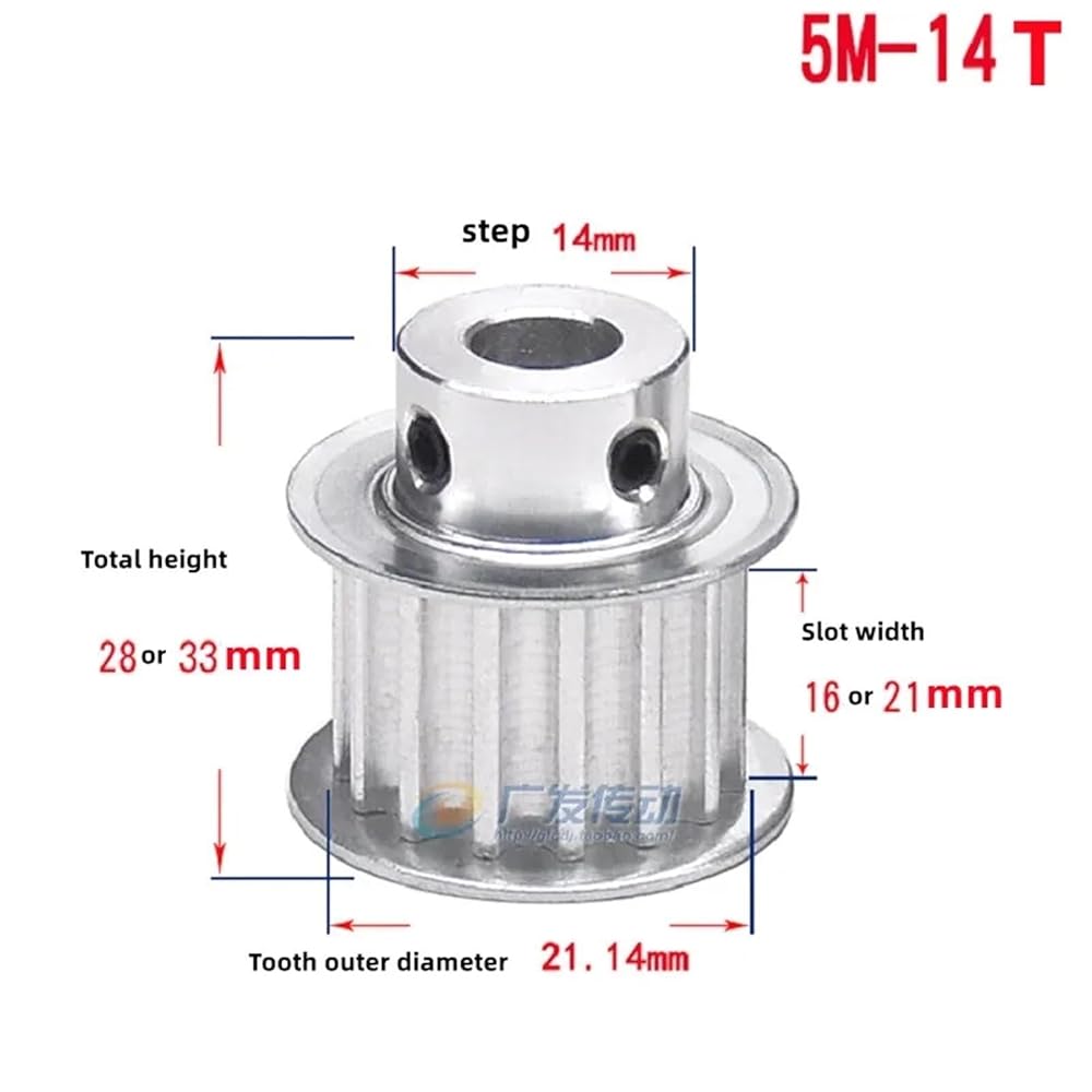 5M 17Teeth Timing Pulley BF Type Bore 5-10mm Slot Width 16/21mm 1Pcs