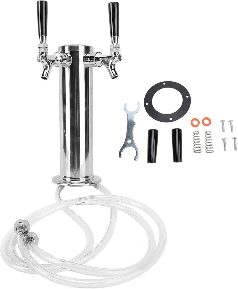 Stainless Steel Construction: Crafted from premium stainless steel, this double tap tower ensures long lasting durability and safety, making it ideal for the dependable dispensing of beer and other beverages.