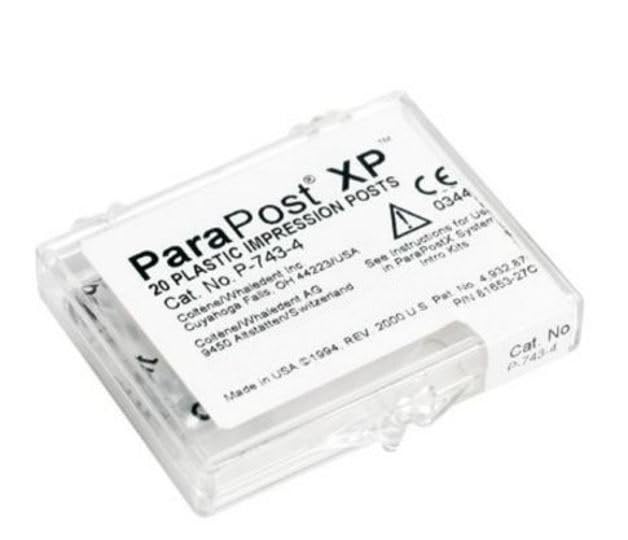 ParaPost XP P743-4 yellow .040" (1.0mm) plastic impression post, 20 post refill. Developed for endodontic techniques. Made of durable medical-grade plastic. Safe for the surrounding tooth structure. Comes in a hard case. ParaPost XP Plastic Impression Posts are endodontic instruments used in casting techniques. These radiopaque dental posts feature a biocompatible plastic construction and are available in various sizes to suit specific needs during endodontic procedures.Each pack contains 20 x plastic posts that come in a hard case for safe storage.
