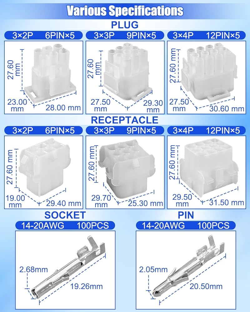 Multiple Specifications, Flexible Applications: Pin connector kits include 6-pin, 9-pin, and 12-pin plugs and crimp terminals, totaling 220 pieces, ample quantity meets various wiring needs, allowing for flexible application in different scenarios and improving assembly and maintenance efficiency