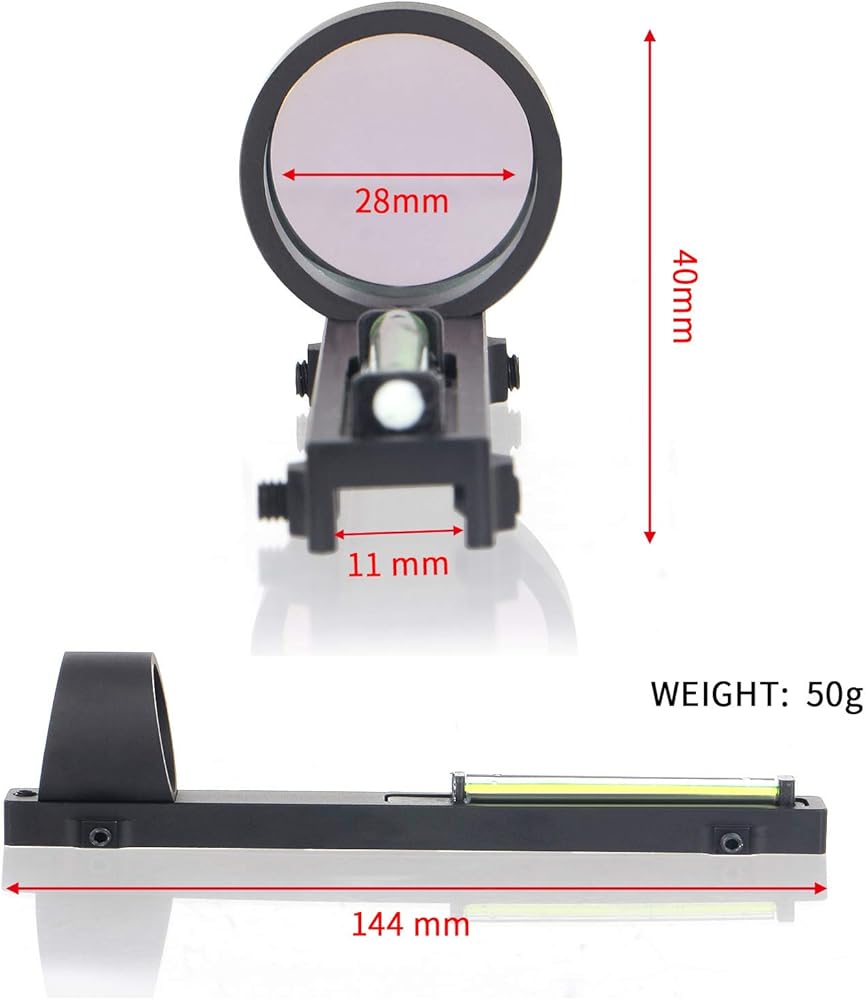 High-Performance Material & Clear Objective Lens: 1x28 fiber optic green dot sight is made of 6063-T6 aluminum alloy in a black matte finish. It has a Fully Coated 28mm Objective and a 6-degree Field of View. Unlimited Eye Relief. Parallax Free Design.
