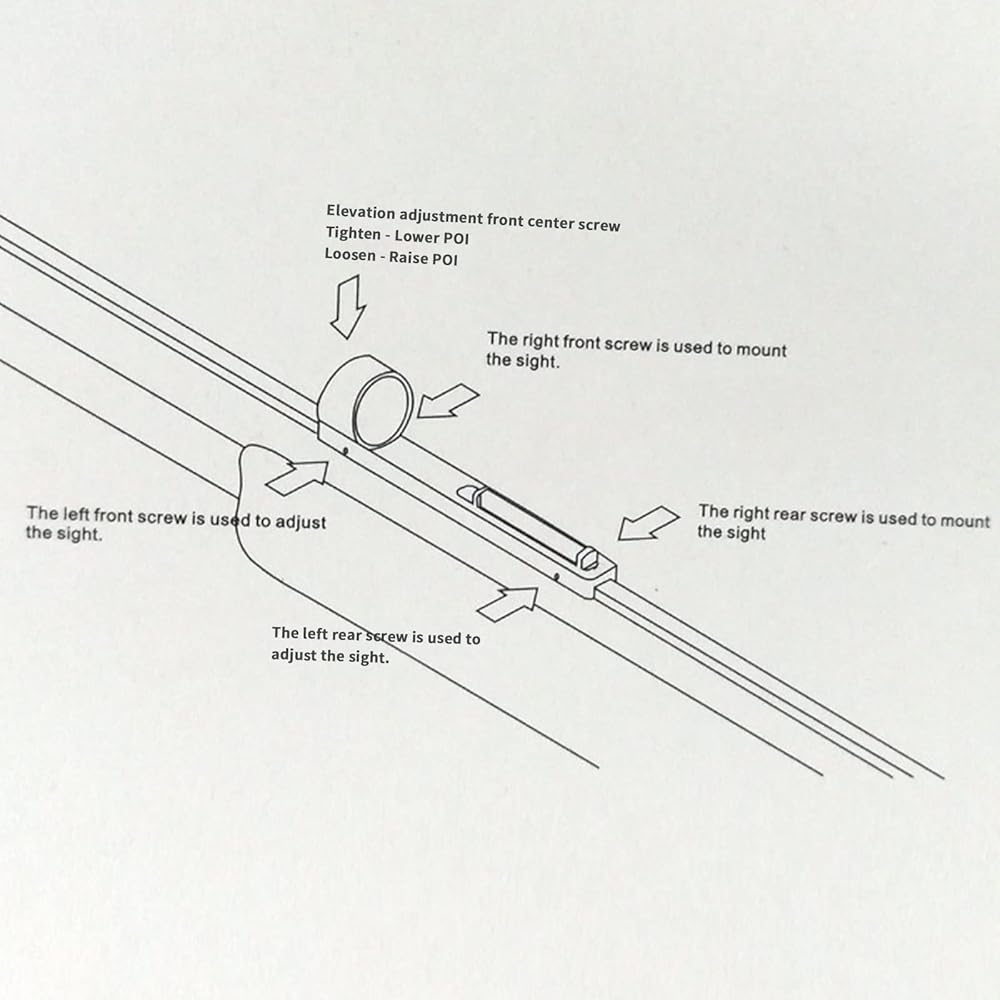 Adjustable: Adjustable POI with included hardware. The front center grub screws are used to adjust the point of impact. Tightening the front will lower the Point Of Impact, and tightening the rear will raise the Point Of Impact. You can use the included wrench to adjust the green dot's Windage and Elevation (up, down, left, and right).