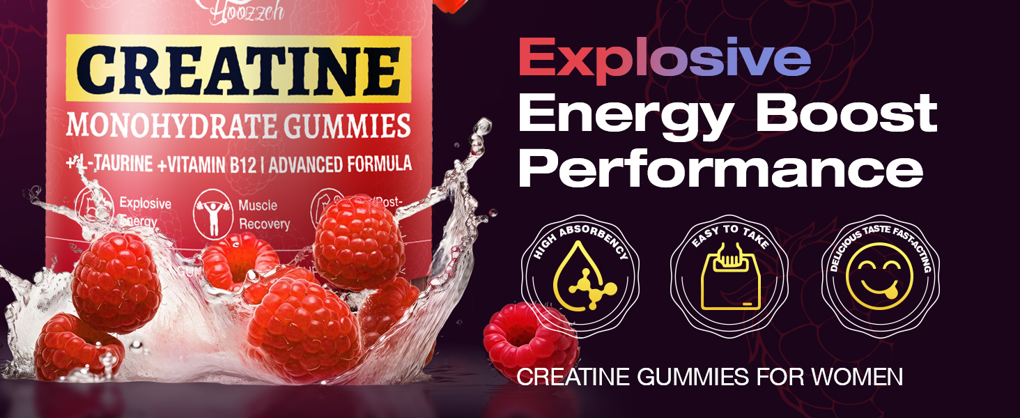 All NATURAL RASPBERRY FLAVOR:Creatine monohydrate gummies are vegan, non GMO, halal, and gluten free, catering to your dietary preferences. These pure and healthy soft sweets do not contain artificial colors or spices. They are blended with natural raspberry essence. They taste sweet and sour and refreshing, leaving the bitter feeling of powder behind. No need for brewing, ready to eat after opening the bottle, making daily creatine supplementation a joyful ritual