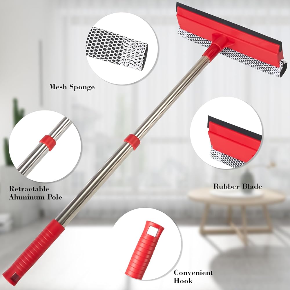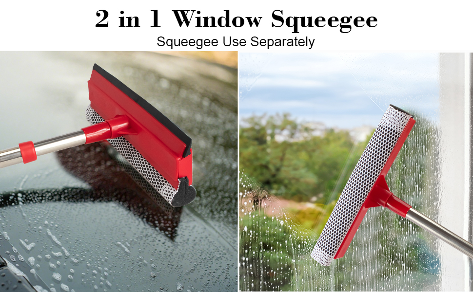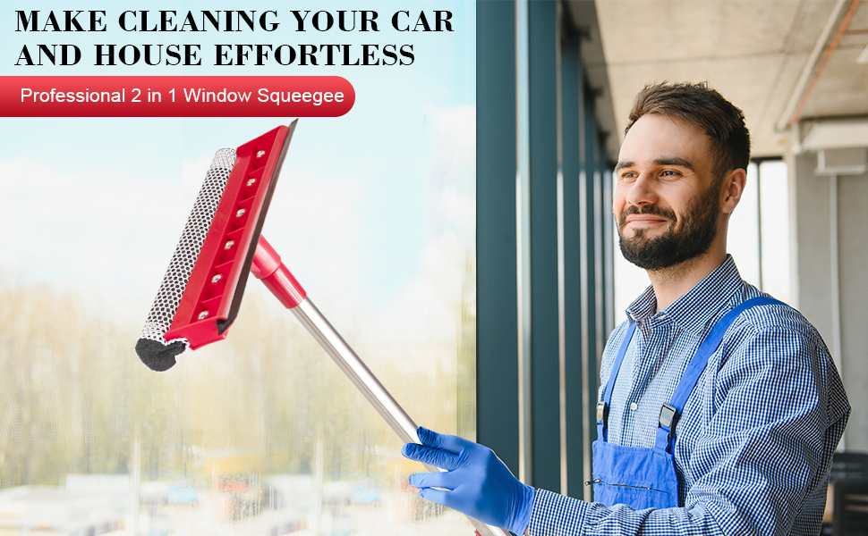 【2-in-1 Dual Cleaning System】The soft sponge strip scrubs away dirt and grime, while the high-quality rubber blade swiftly removes water – together they effortlessly eliminate stains and water marks in one seamless motion.
