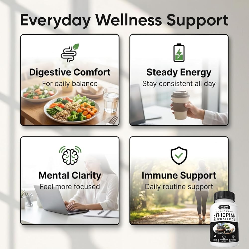 【Daily Wellness Companion】Purely ethiopian black seed oil are designed to promote daily wellness, helping maintain steady energy and overall balance as part of a simple daily routine