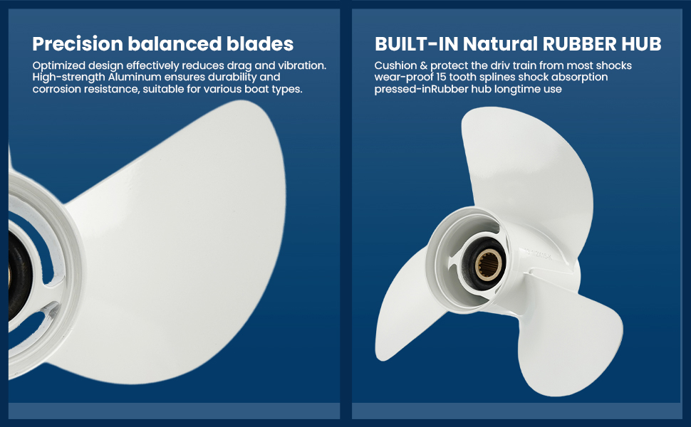 Outstanding Performance, the Ideal Choice for YAMAHA 50-130HP Engines This propeller series now offers five distinct sizes to meet a variety of performance demands: 14×11, 13 1/2×15, 12 5/8×21, 13 5/8×13 , and 13 1/2×14 . Each size is tailored to provide optimal performance for different boating needs, ensuring a versatile and satisfying driving experience: Low-Pitch Models 14×11: Designed for users seeking enhanced stability and traction at low speeds, ideal for strong initial acceleration and high load capacity. 13 5/8×13: Offers improved low-speed handling with excellent load capacity, making it a perfect fit for demanding conditions. Medium-Pitch Models 13 1/2×14 : Provides a balanced mix of acceleration and cruising speed, ensuring smooth handling for multi-purpose boats. 13 1/2×15: Excels in versatility, combining impressive acceleration and efficient cruising performance for a wide range of applications. High-Pitch Model 12 5/8×21: Designed for top-end speed and optimal fuel efficiency, making it ideal for high-speed planing and long-distance cruising. Durability and Reliability Crafted from high-strength aluminum alloy with a durable anti-corrosion coating, these propellers are built to perform in both freshwater and saltwater environments. Rigorous precision engineering and quality testing ensure exceptional durability even in the harshest conditions. Smooth Performance Equipped with a 15-tooth rubber hub, the series ensures smooth power transfer, reduced vibration, and easy installation. This design enhances handling comfort and delivers a seamless boating experience. Warranty and Support Every propeller is backed by a 2-month warranty and dedicated after-sales service, offering peace of mind and reliability for every journey. Choose the propeller that best suits your boating needs and enjoy the perfect balance of power, efficiency, and durability.