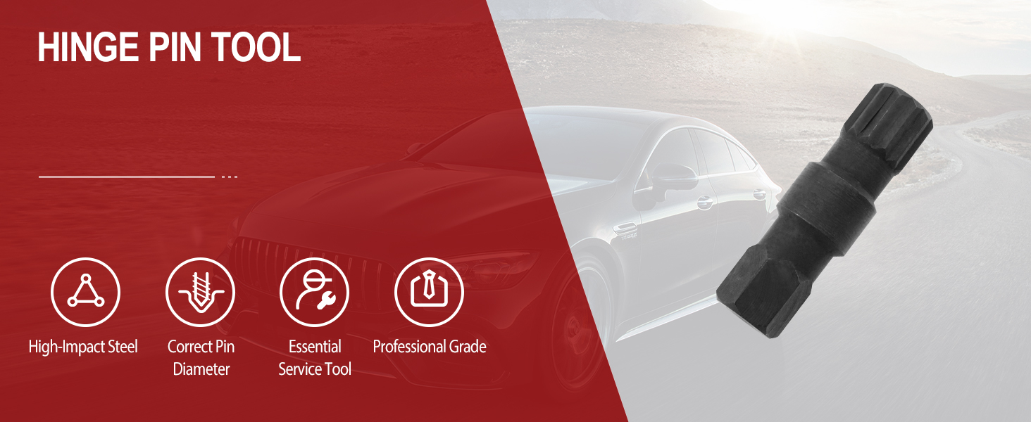 Door Hinge Pin Removal Tool Construction: Made from high-intensity carbon steel with black oxidation surface coating for corrosion resistance and long service life.