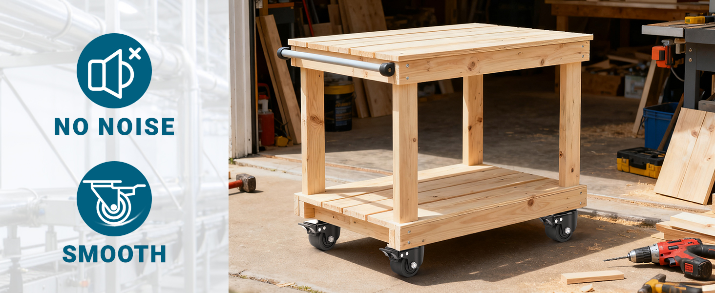 【Wear-Resistant Nylon Wheels】Industrial grade heavy duty nylon wheels combine moderate hardness with superior abrasion resistance for exceptional durability and floor protection. Their low center of gravity enhances stability, reducing shocks and vibrations. Designed for quiet, smooth operation across various surfaces including wood, tile, carpet, and uneven ground—they are ideal for both indoor and outdoor use.