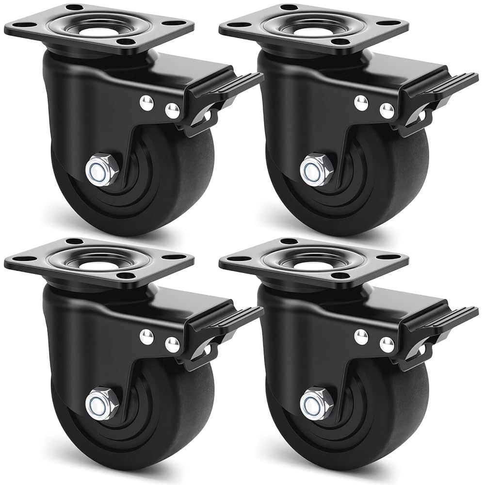 【Smooth Swivel & Safety】These swivel casters feature built-in dual ball bearings for smooth maneuverability even in tight spaces. Each wheel is equipped with a brake system that locks instantly when the brakes are pressed down, preventing accidental movement and ensuring safety.