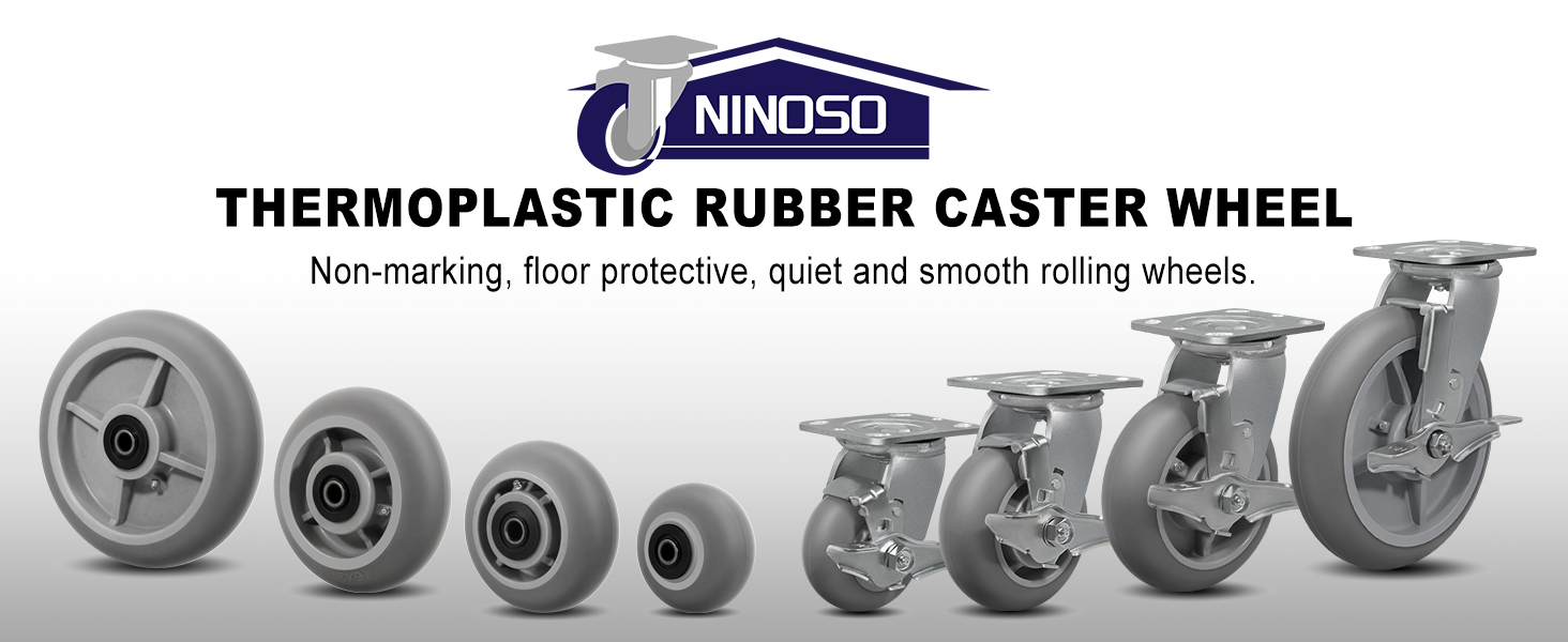 HEAVY DUTY CASTER: NINOSO caster are made of top quality rubber material, which has strong wear resistance, silent and shock absorption, no-marking and enhances the impact resistance of the whole casters.