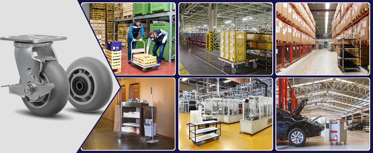 UNIVERSAL: Industrial Caster saves you labor, while enhancing your work efficiency and offers versatility for an assortment of indoor carts, wagons, dollies and other moving applications that require the ability to roll smoothly over any surface. Mainly used in Hospitals, Food Service, Bakeries, Schools, Hotel, Laboratories, Warehouse and many other places.