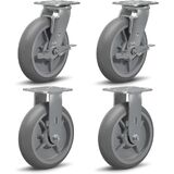 CASTER WHEEL SIZE: Caster size diameter: 8 inches, width: 2 inches, Hub Length: 2-7/16”,with ¾”roller bearing, ½ ID wrench bushing. top plate: 4”x 4-1/2”, total height: 7-1/2”. Each caster holds up to a maximum of 700 lbs. or set of 4 casters load 2800lbs capacity.