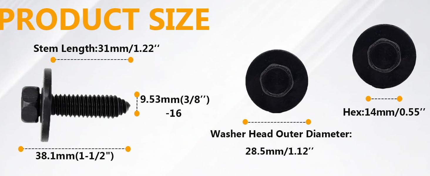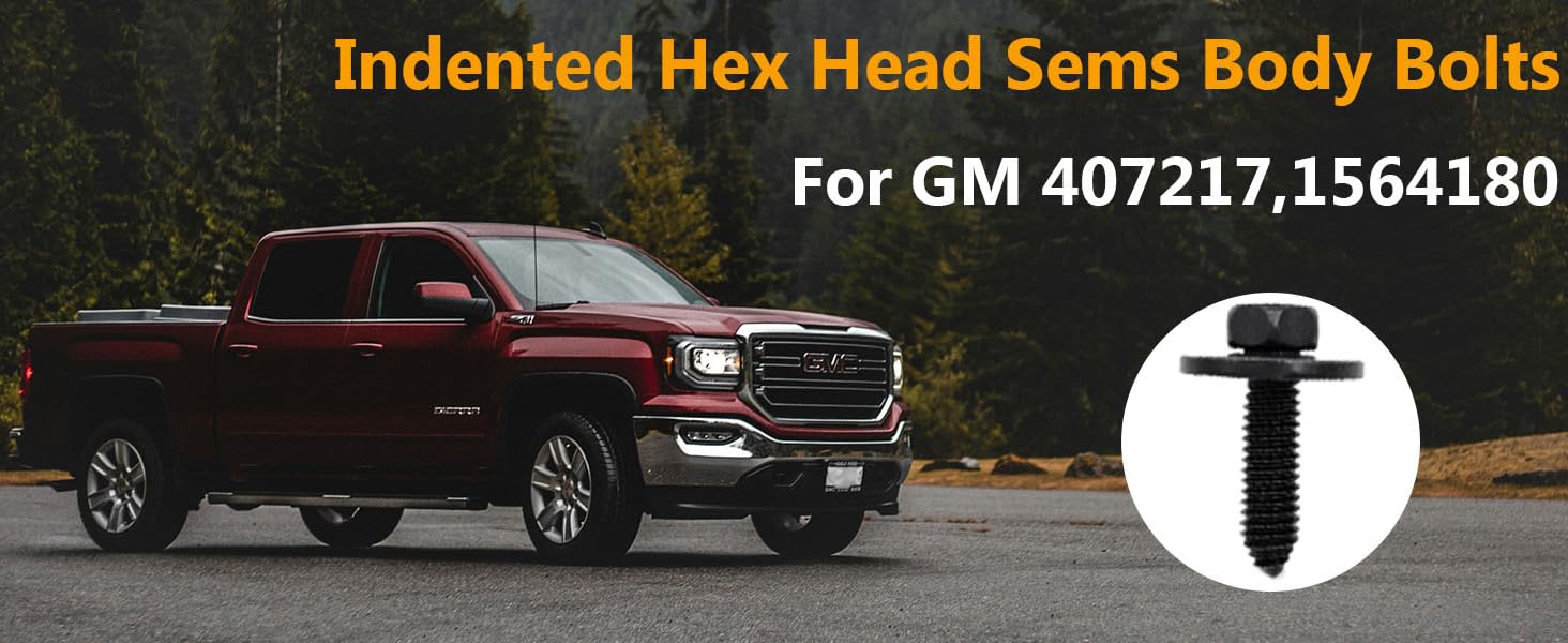 Fitment: Indented Hex Head Sems Body Bolts are Compatible with GM 407217,1564180.