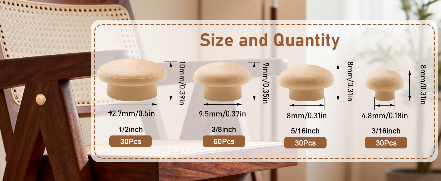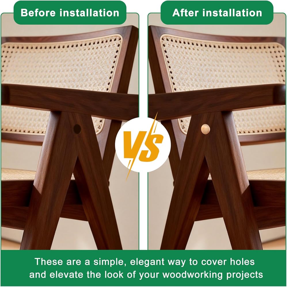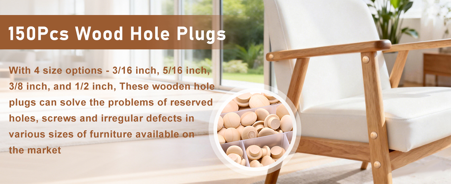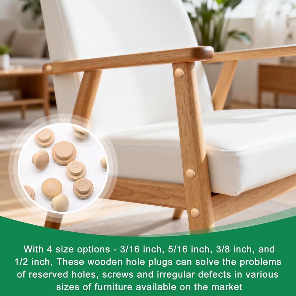 Multiple Sizes Available: With 4 size options - 3/16 inch, 5/16 inch, 3/8 inch, and 1/2 inch, These wooden hole plugs can solve the problems of reserved holes, screws and irregular defects in various sizes of furniture available on the market