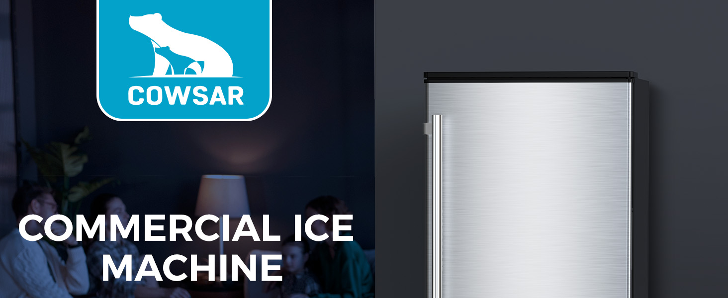 【Multifunctional Control Panel】 The commercial ice maker is fitted with an intelligent LCD panel. All functions and operations can be managed through the control panel. It displays the ambient temperature as a reminder to maintain the surrounding temperature for efficient ice-making. The Cowsar commercial ice maker features a 24-hour timer function, allowing you to set the times for the machine to turn on or off. This under-counter ice maker will initiate a self-cleaning cycle by pressing the "Timer Clean" button on the LCD screen for 5 seconds.