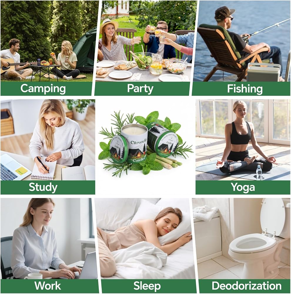 Instantly create a warm camping atmosphere: The fresh aroma of lemongrass, lemongrass, and mint can effectively neutralize the dampness and dust that may exist in the wild environment. Whether it's chatting around the stove at night, enjoying solitude, or bedtime in family camping, it can enhance the sense of ceremony and happiness