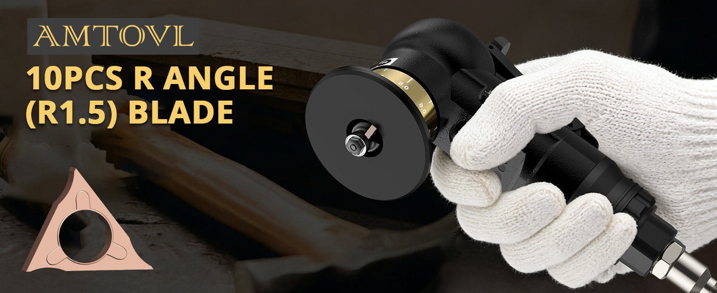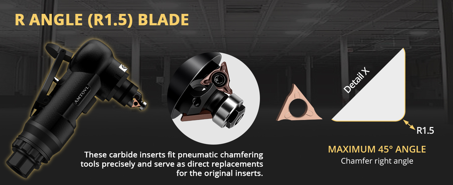 AMTOVL 10PCS Triangle Cutter Heads R Angle for Pneumatic Chamfering Machine,Carbide Turning Inserts for Mini Air Chamfer Tool Replacement Lathe Blades for Deburring on Wood Metal Plastic