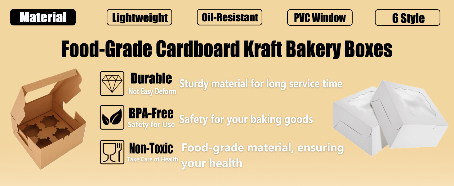 Easy to Assemble and Store: Our bakery boxes for cookies come as flat sheets to protect them from damage during the transportation. Besides, cupcake boxes are easy to put together with the clear and smooth indentation, also convenient for storage