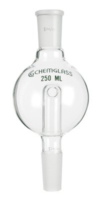 Used between the vapor tube and evaporation flask on a rotary evaporator to prevent contents of the flask from being drawn into the condenser in the event of "bumping." Traps have a 24/40 top outer joint and the listed size of lower inner joint.