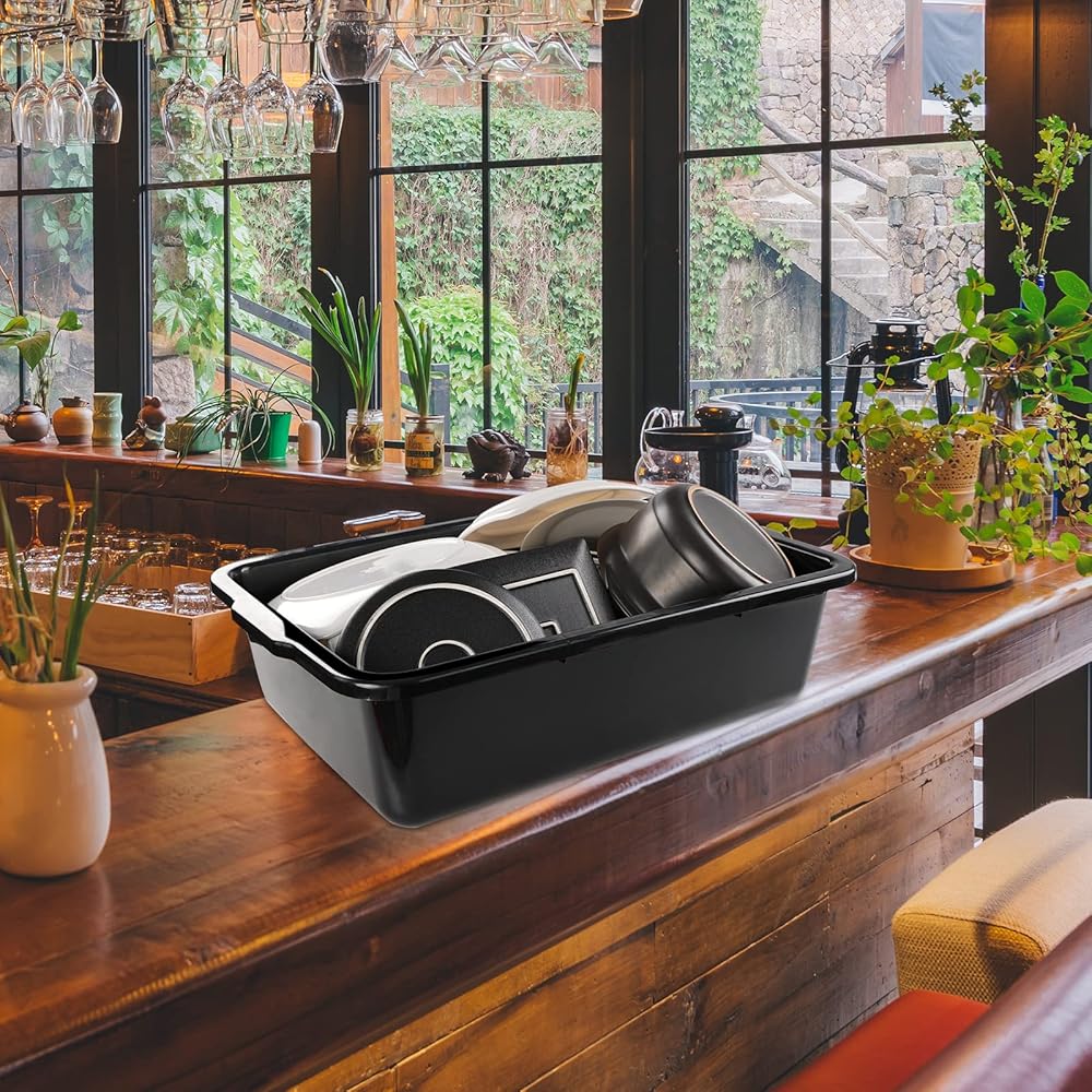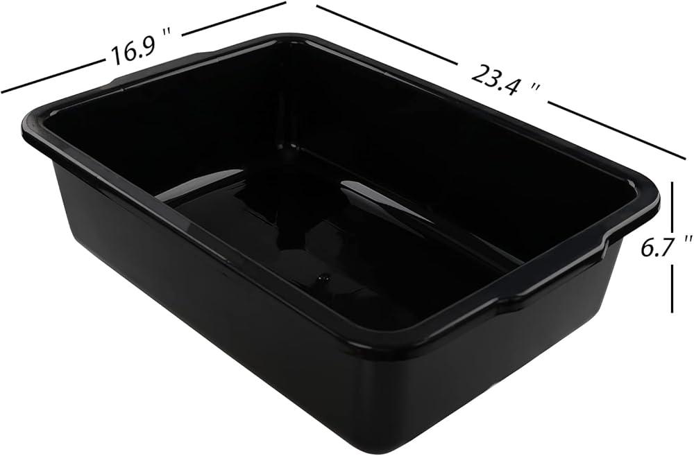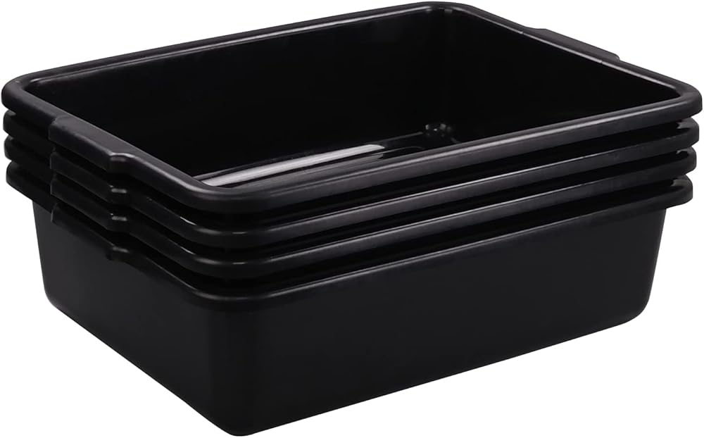 Qskely 4-Pack Plastic Commercial Bus Box, 32 L Black Large Bus Tub