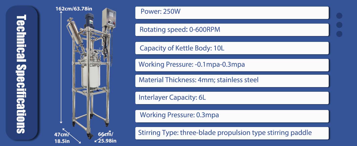 【Double-layer Design】- Due to the double layer design, refrigerant or hot oil can be injected into the reaction vessel through the middle layer, achieving constant temperature heating or cooling of the materials inside the vessel. This design can be used for concentration, distillation, reflux, separation, purification, and other operations under constant speed, constant force, and constant temperature conditions, and is suitable for teaching, experimentation, pilot testing, and production.