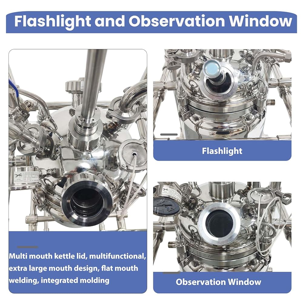 【Stainless steel Stirring Rods】- Stainless steel stirring rods are suitable for mixing various solvents. The deceleration and boosting motor mixes smoothly, has high torque, no sparks, and has a long service life. The speed control device realizes dual digital display of speed and temperature, with intuitive and convenient operation. There is an observation window and a flashlight, which can be fixed on the observation window, so it is convenient to observe the inside of the kettle at any time.