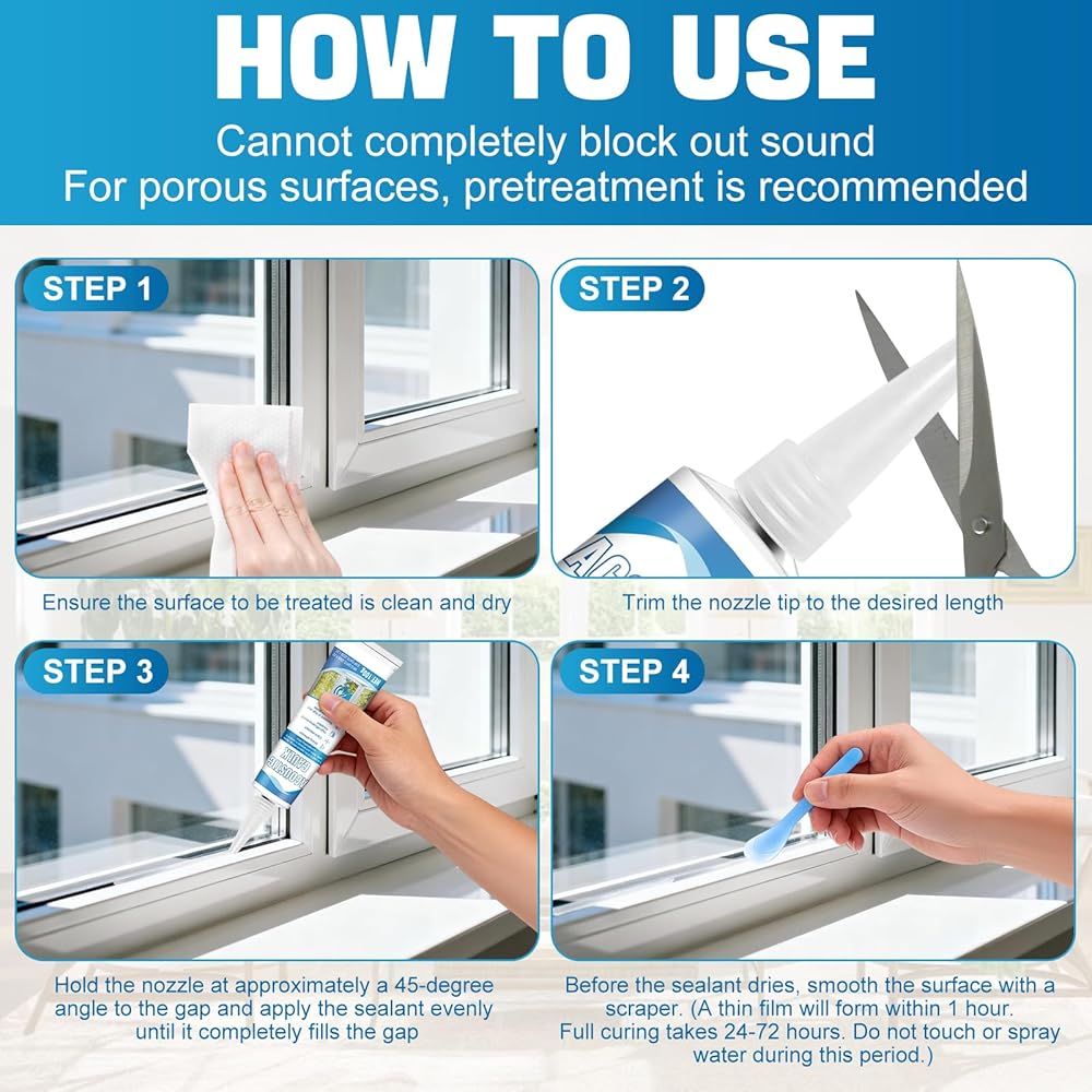 High-Efficiency Sound Insulation: This WANJAO acoustic sealant is specifically designed to reduce sound transmission. By filling gaps, it effectively blocks sound from propagating through walls, wall panels, and door seams, significantly outperforming ordinary sealants.
