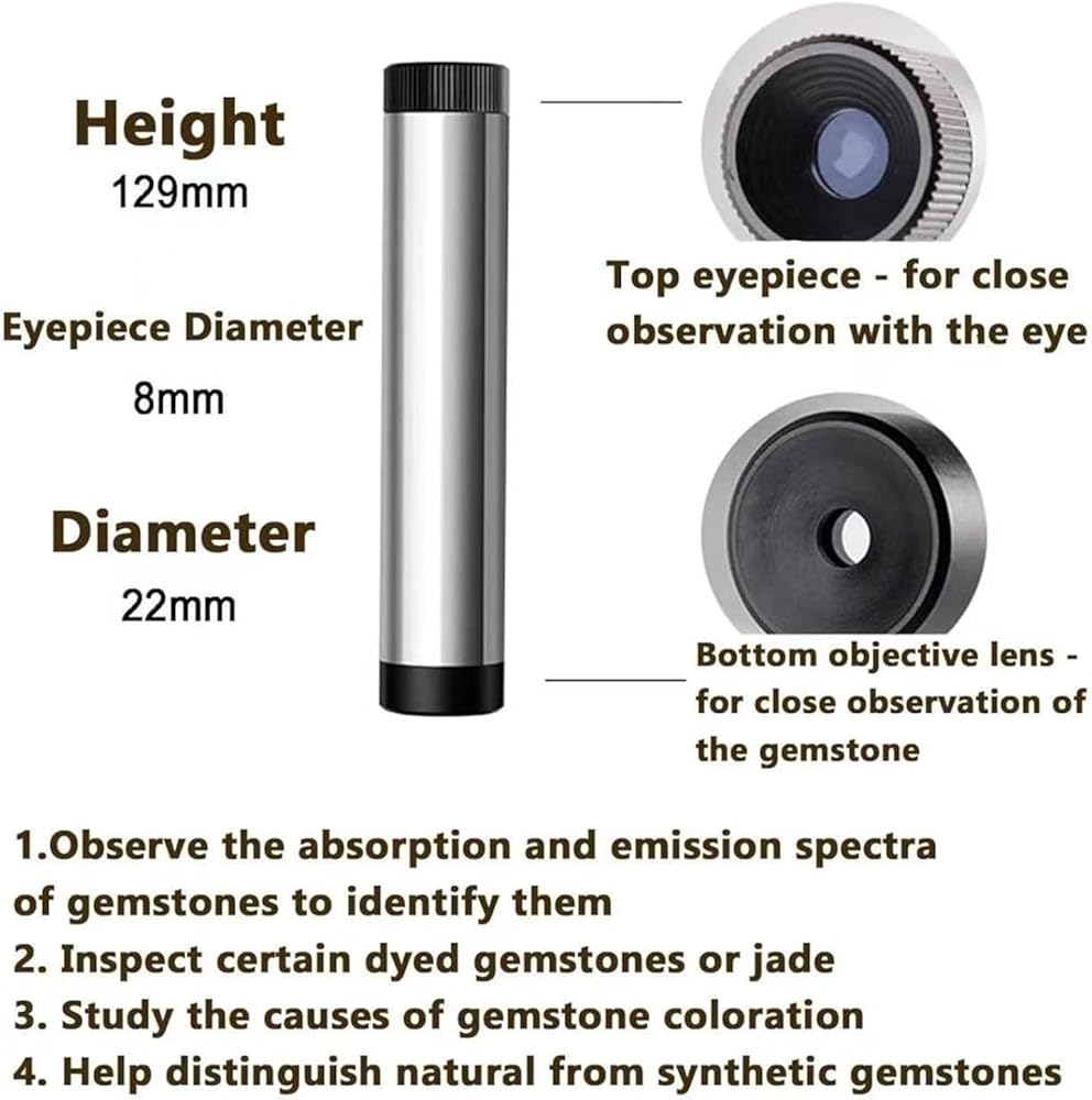 【Gem Identification Spectroscope】With this Handheld Diffraction Spectroscope, observe absorbed wavelengths as vertical black lines in the spectrum, revealing a unique absorption spectrum for each stone—like a fingerprint—to aid in gemstone identification for gems, jewelry, rocks, and antiques.