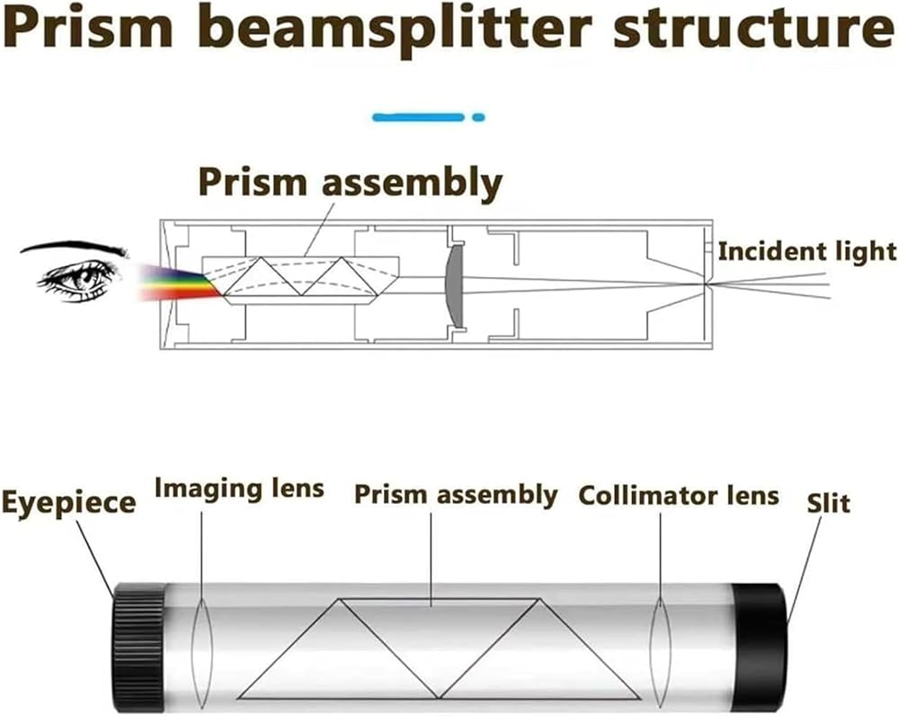 【Durable Material Design】Crafted from optical glass and an aluminum body, this Handheld Diffraction Spectroscope provides enhanced durability and longevity, making it resilient for extended use in field explorations or lab settings.