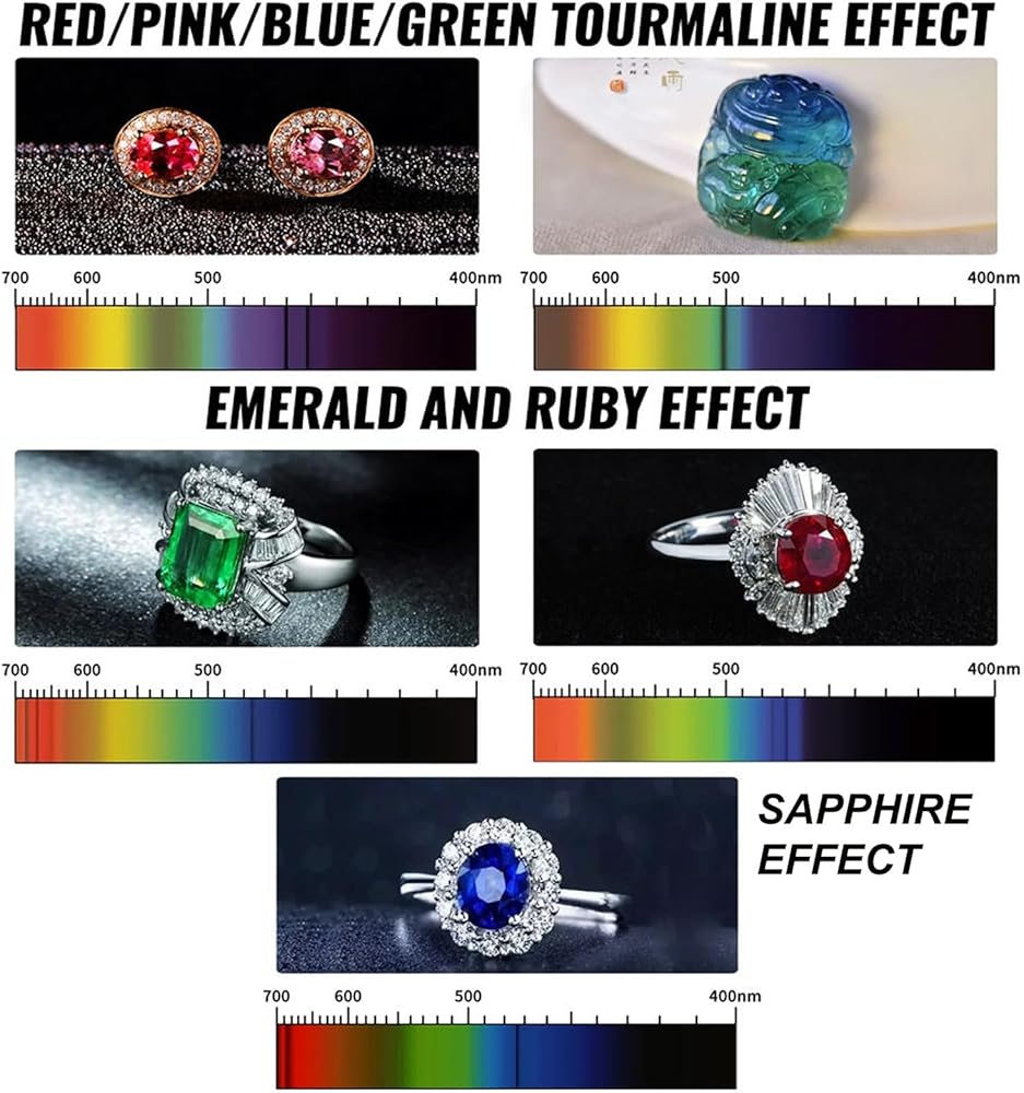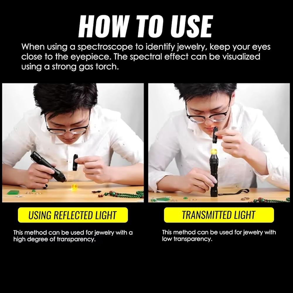 【Reveals Gemstone Colors】Our Spectroscope detects absorption patterns, whether by shining a light through transparent stones or viewing reflected light from opaque stones.