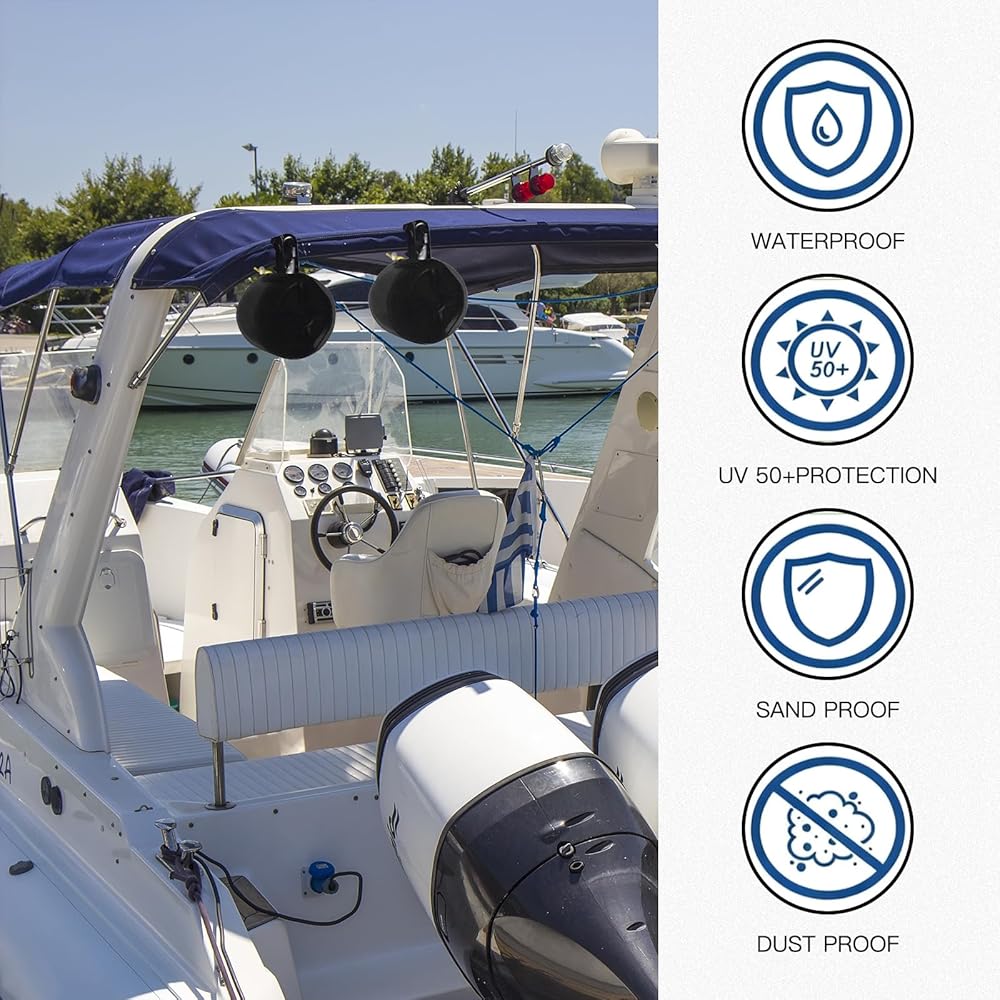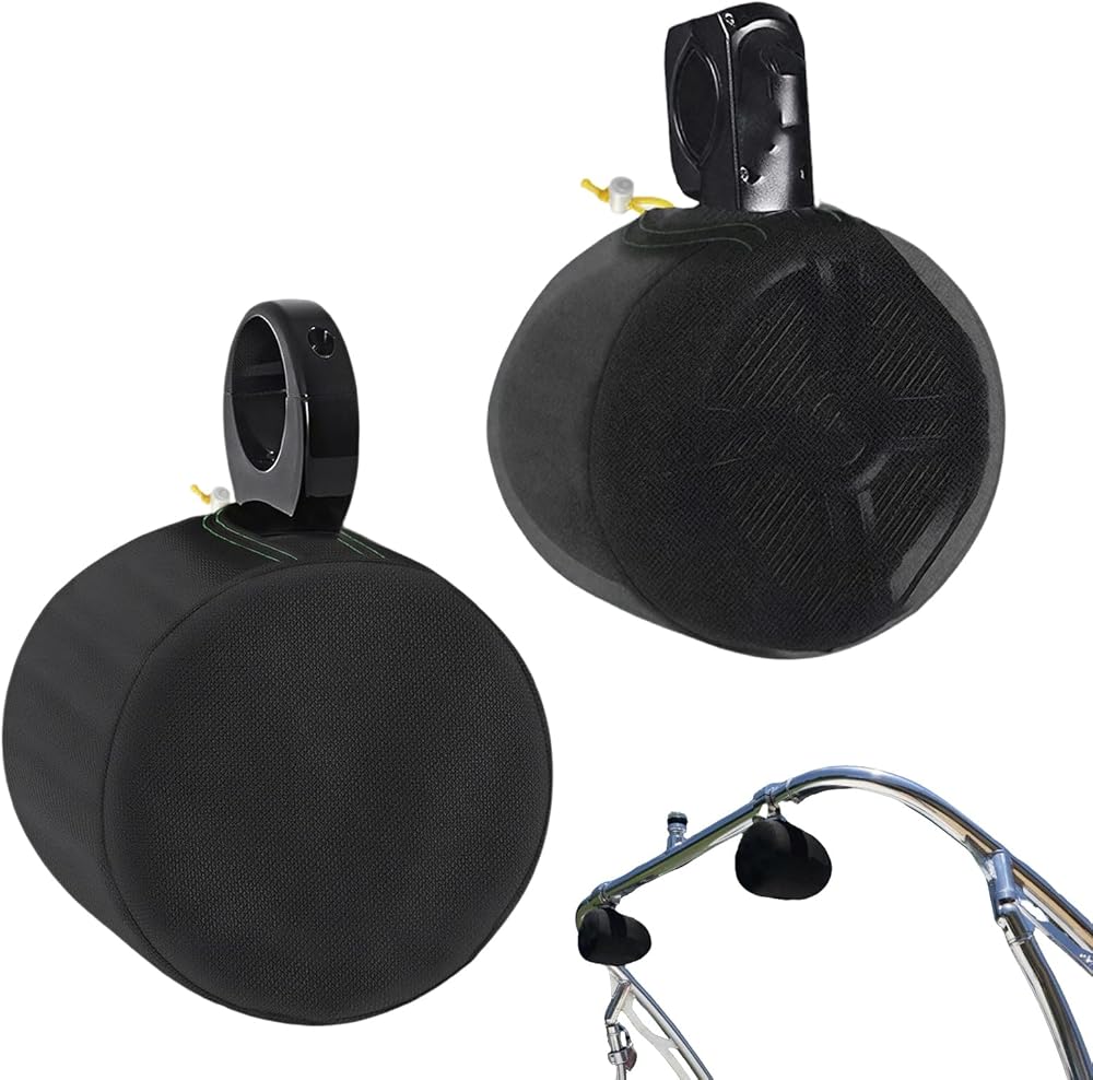 Protect your boat's speakers with these sleek black marine speaker covers from DZHPSRSZ. Designed specifically for watercraft audio systems, these durable covers shield your valuable speakers from harsh elements like sun, salt spray, and moisture while maintaining sound quality. The covers feature a robust mounting system with secure clips for reliable attachment in rough conditions. Made with weather-resistant materials, these covers provide a snug, professional fit that helps extend the life of your marine audio investment. The mesh design allows clear sound transmission while keeping debris out. Perfect for both wakeboard towers and standard marine speaker installations, these covers offer essential protection without compromising your boat's aesthetic appeal. Easy to install and remove for maintenance, these covers are a must-have accessory for any boat owner looking to preserve their sound system's performance and appearance.