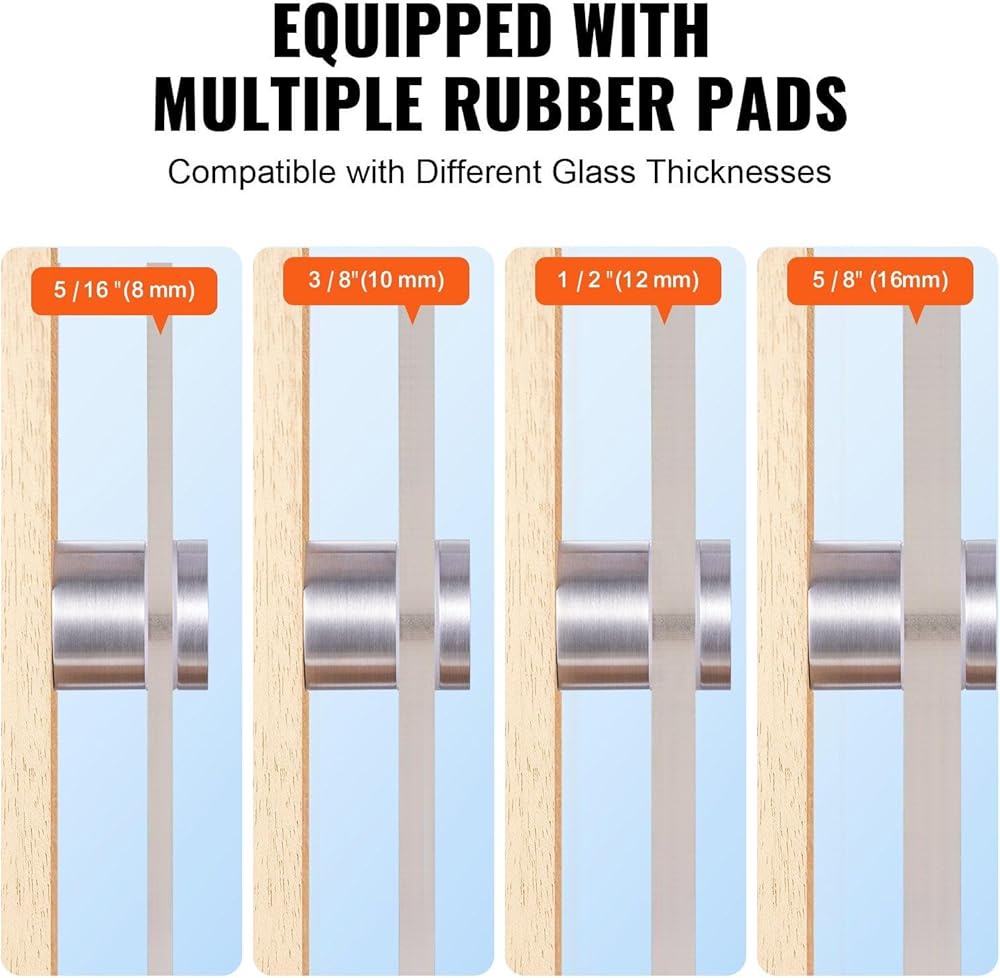 3.High Compatibility: The glass bracket includes multiple rubber pads, fitting glass sizes of 5/16 inch (8 mm), 3/8 inch (10 mm), 1/2 inch (12 mm), and 5/8 inch (16 mm). It can be adjusted to your needs and is suitable for both wooden and concrete walls.<br /
