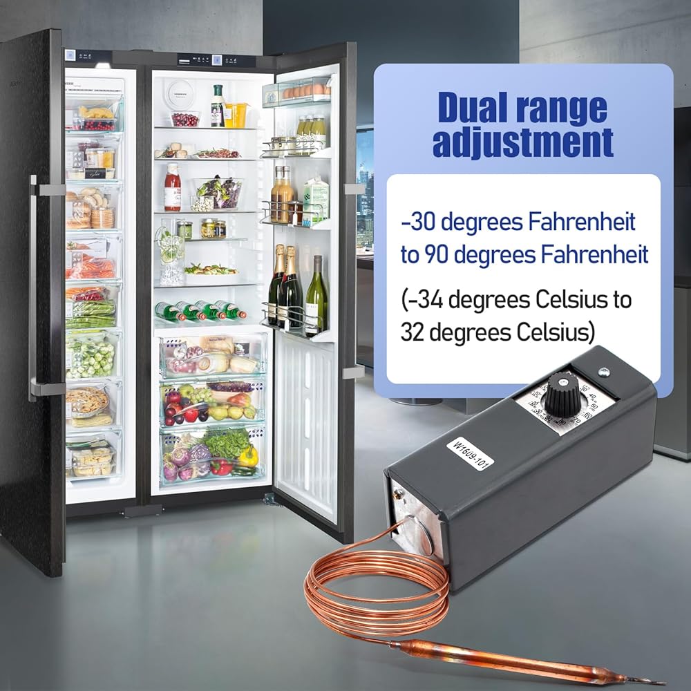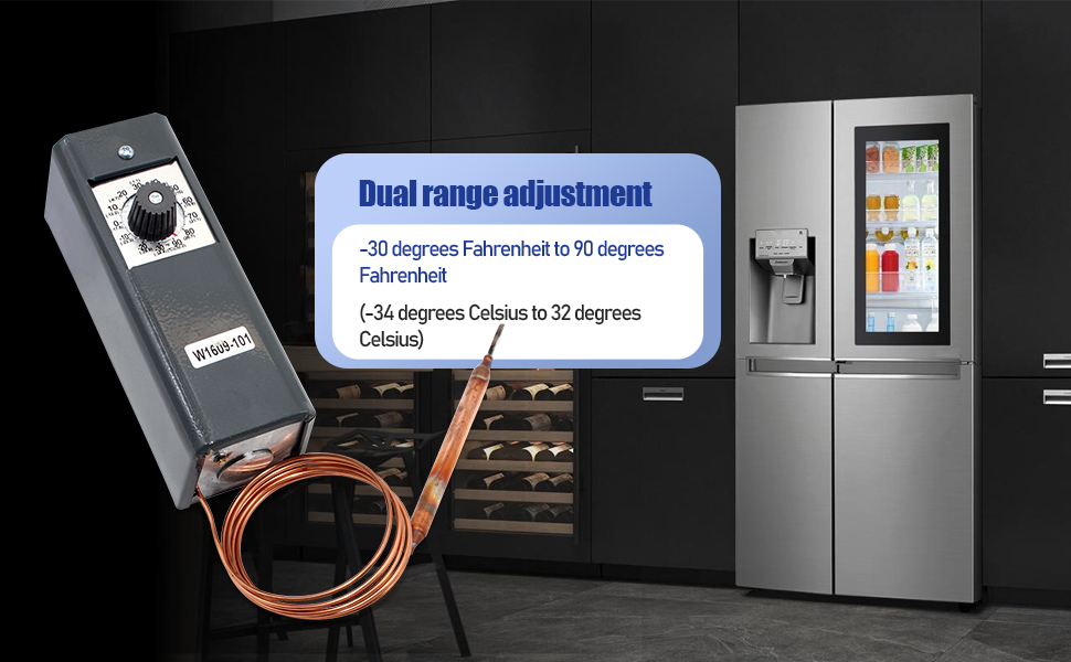 Wide Temperature Control Range:Adjustable temperature range from -30°F to 90°F (-34°C to 32°C) with differential settings from 3.5°F to 16°F (1.6°C to 9°C) for precise refrigeration management