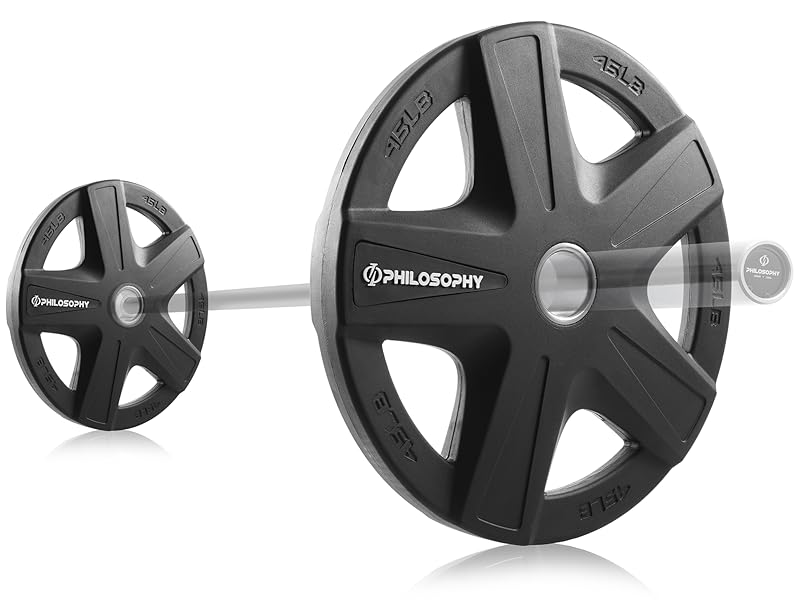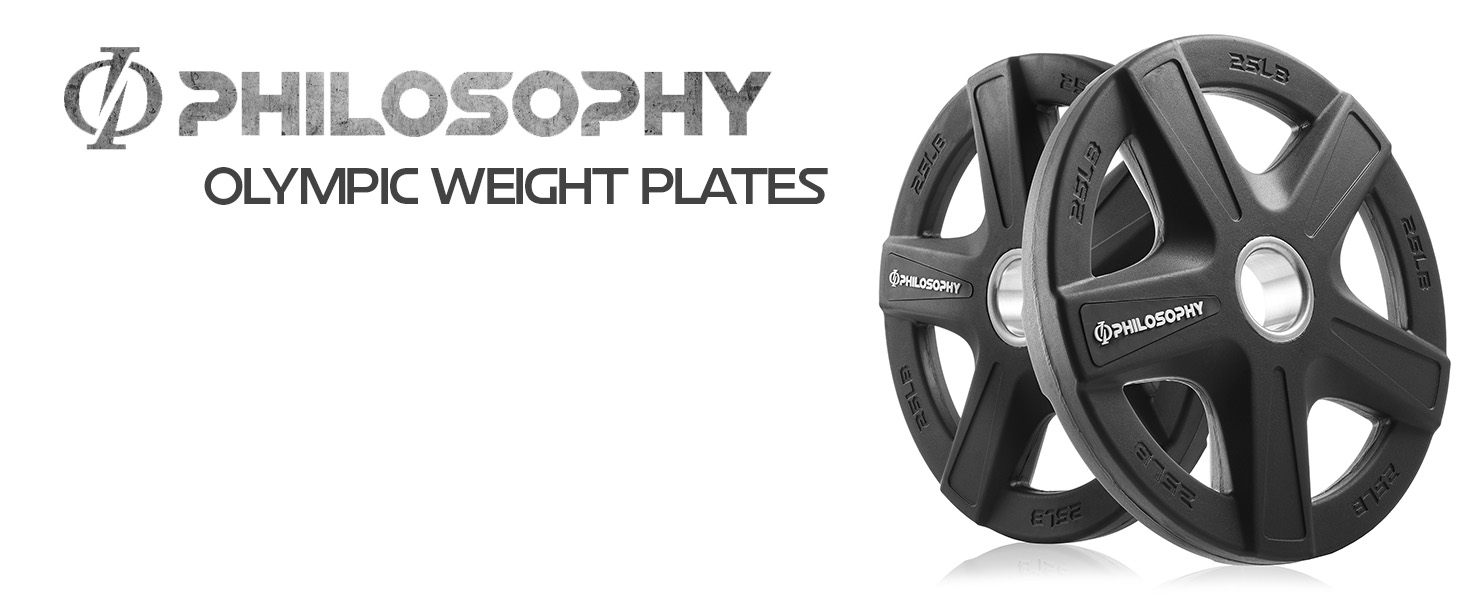 Universal Olympic weight plate: Rubber coated weight plates from Philosophy Gym are made for heavy-duty use with barbells. Perfect for home use, these weights can be stacked to meet your desired level of lifting weight.