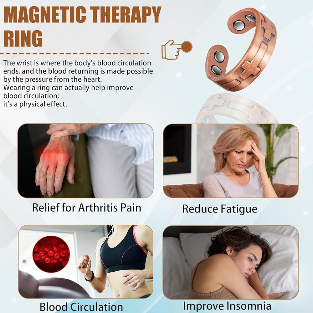 Discover the elegance of pure copper rings with embedded magnets for pain relief. Adjustable, stylish, and functional—perfect for gifting! Shop now for this healing jewelry.