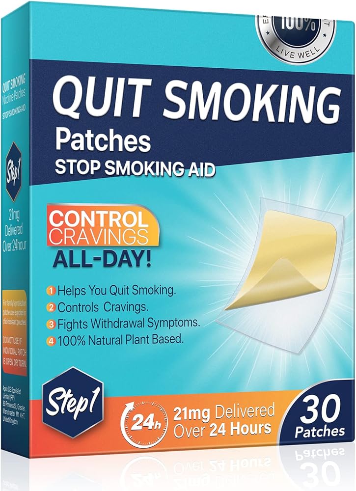 Stop Smoking Aids Patches Step 1 - Complete Smoking Cessation Patch with Four Weeks Step 1 at 21mg, Two Weeks Step 2 at 14mg and Two Weeks Step 3 at 7mg.