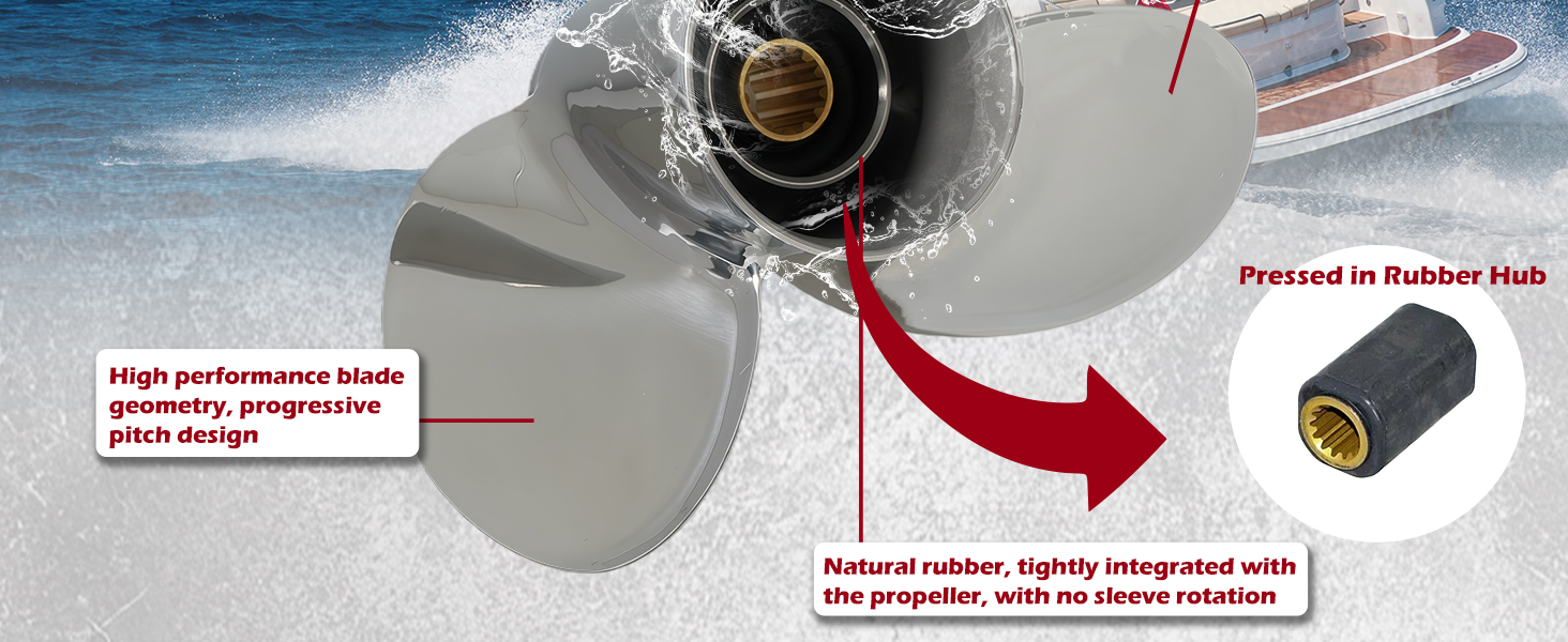 Advanced Casting technology:10 3/8x13 stainless steel propellers through a series of theoretical calculations, geometric design, prototype testing, pilot production and field testing, the design and service life of stainless steel propellers can meet various requirements of customers.