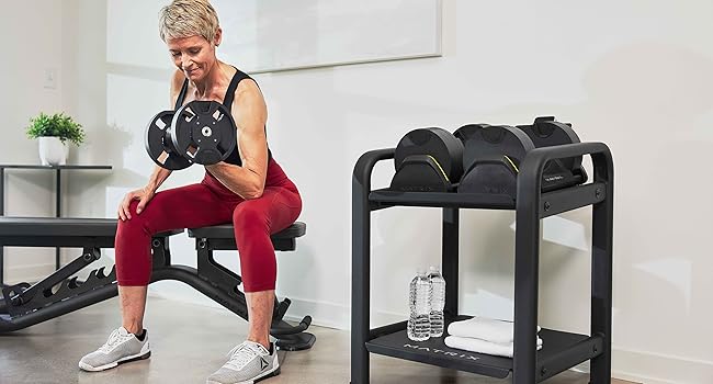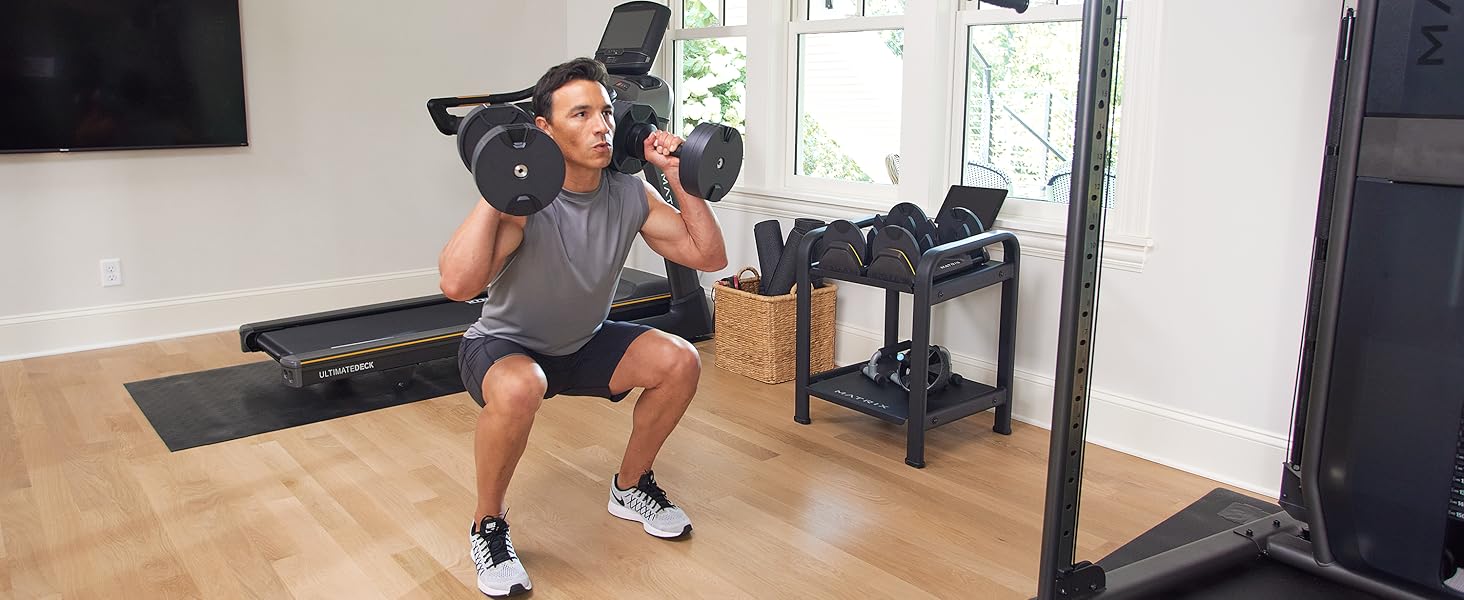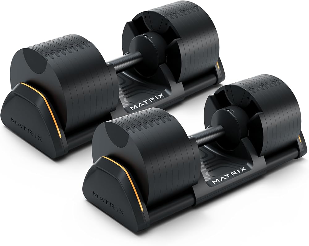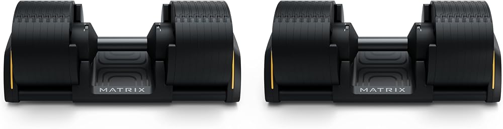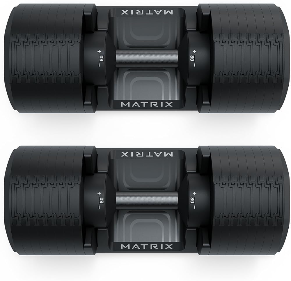 Matrix Fitness DB80 80 lb. Adjustable Dumbbells | Quick Adjustments for Strength and HIIT Training | Replaces 16 Dumbbell Pairs, Flat Bottom Roll Free Design for Safe Storage