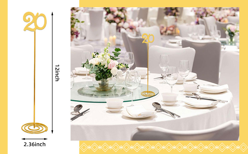 Sturdy Size: Each table number stand is 12 inches high and the base is 2.36 inches wide. The wide base design ensures stable placement and is less likely to tip over. These 1-20 table numbers are suitable for use in various indoor and outdoor environments