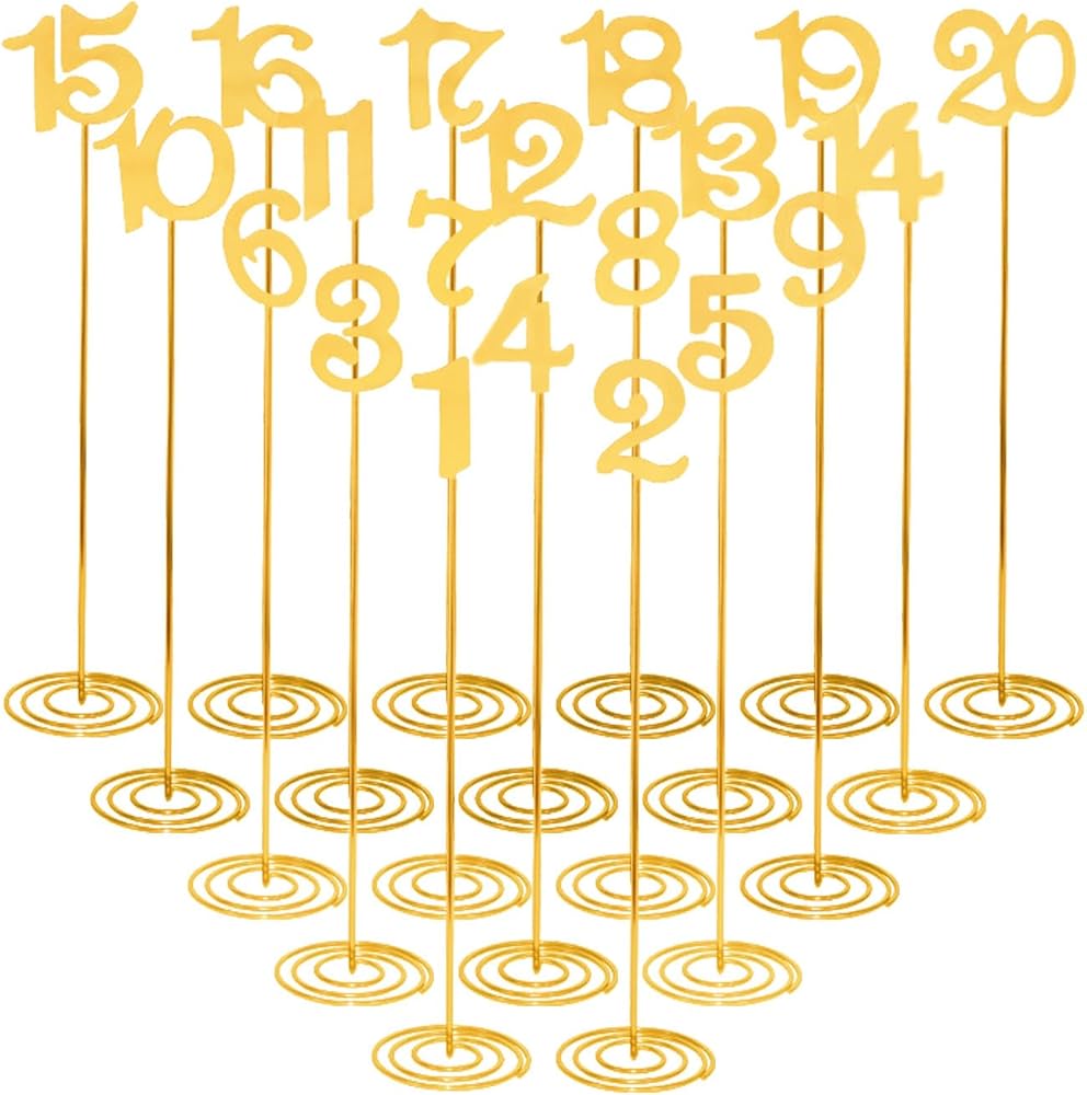 20 Pcs Metal Table Numbers 1-20 Wedding Table Numbers 12 Inch Stainless Steel Desk Number Stands Sturdy Holder Base for Wedding Party Restaurant Birthday (Gold)