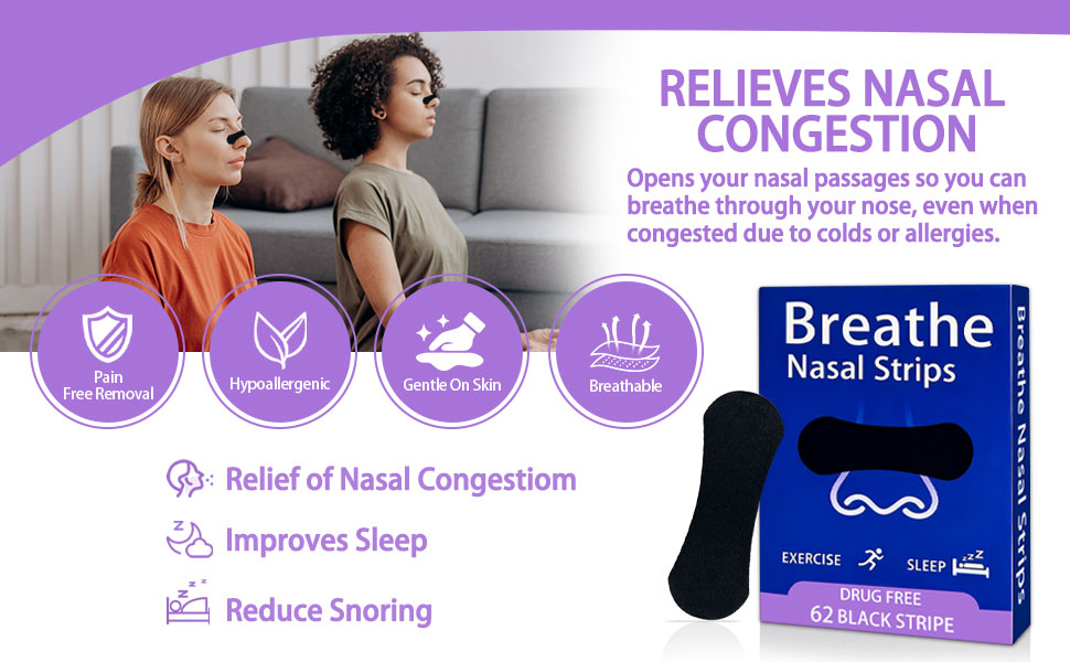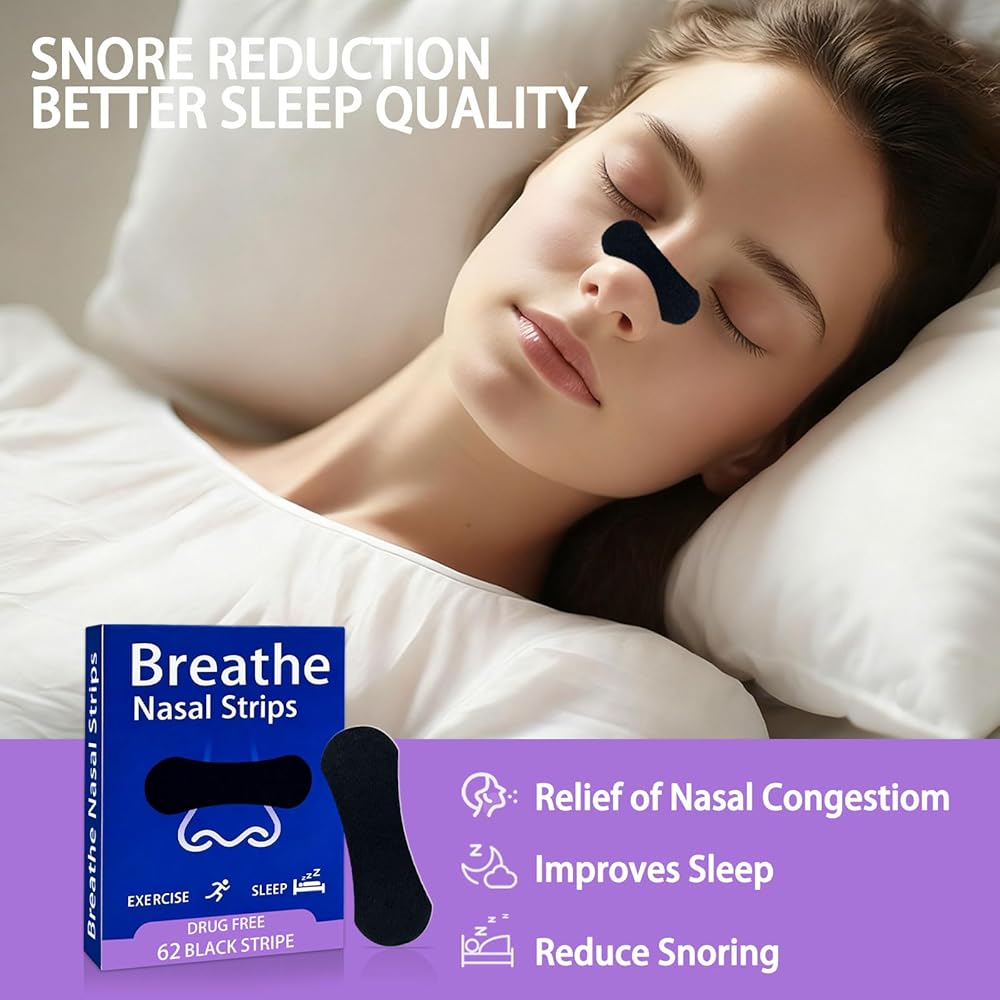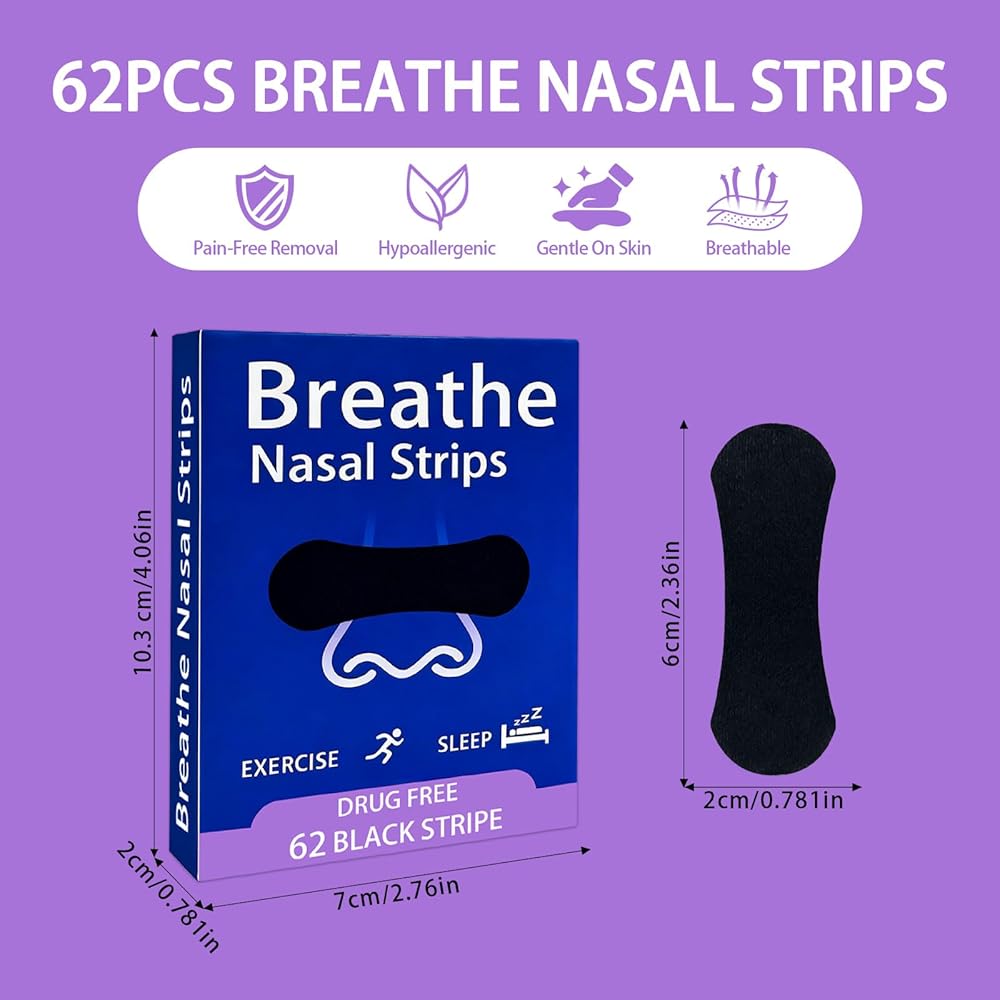 Hypoallergenic & Skin-Friendly: Made with premium hypoallergenic materials, these breath strips feature a hypoallergenic adhesive that provides a strong all-night hold without causing irritation or redness. Ideal for sensitive skin compared to ordinary sleep nose strips.