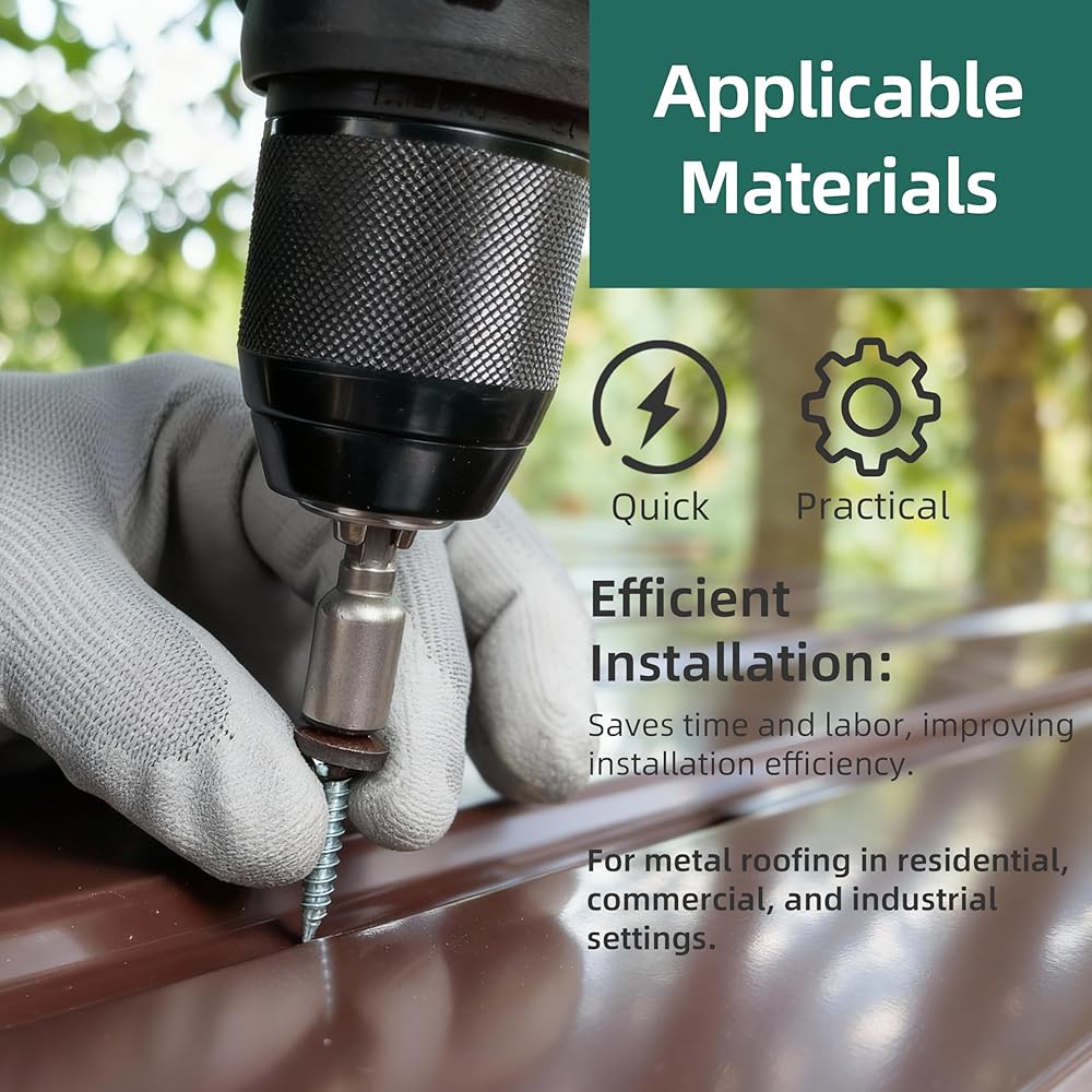 Product Name - 50 pcs #10 x 1 inch hex metal roofing screws with rubber washers and 1pcs magnetic hex socket bit for secure screw placement during installation.