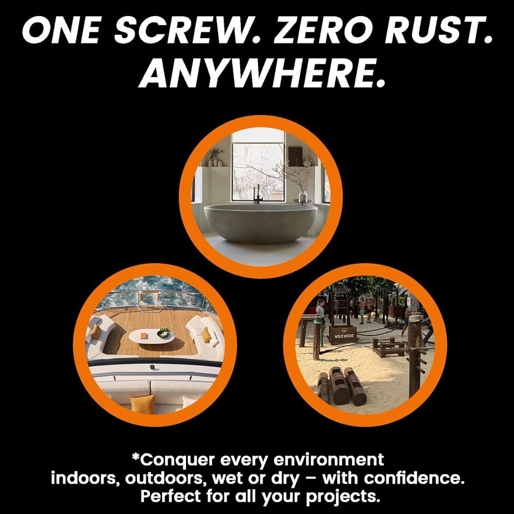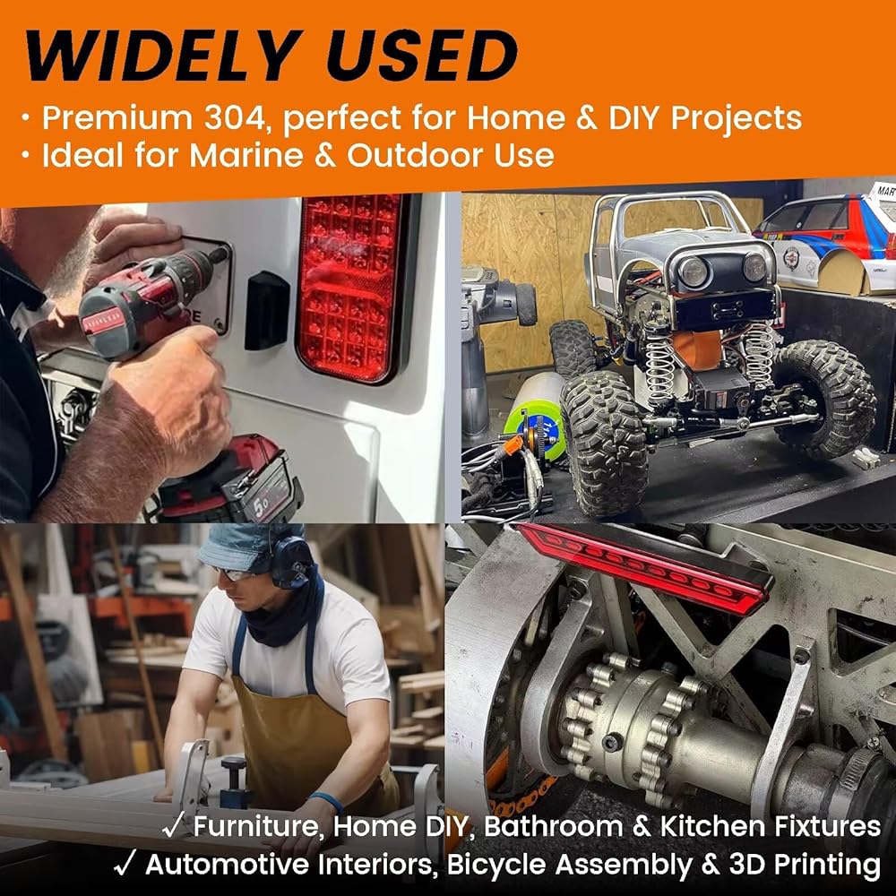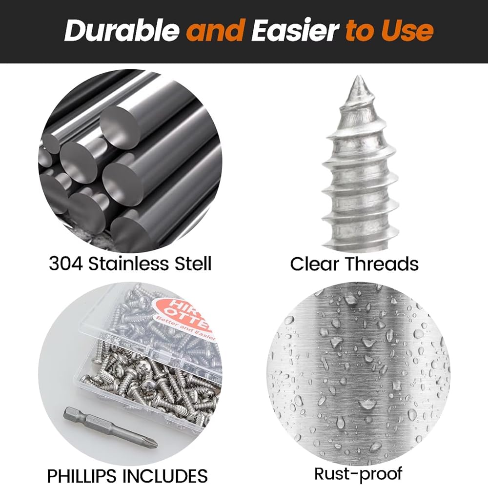 • 【304 STAINLESS STEEL - GENUINE RUST RESISTANCE】 Crafted from authentic 304 Stainless Steel (18-8), these screws provide reliable corrosion resistance for both indoor and outdoor use—ideal for saltwater areas, pool equipment, sprinkler systems, and outdoor furniture. Note: 304 stainless steel may exhibit slight magnetic properties due to cold working—this is normal and does not affect rust resistance.
