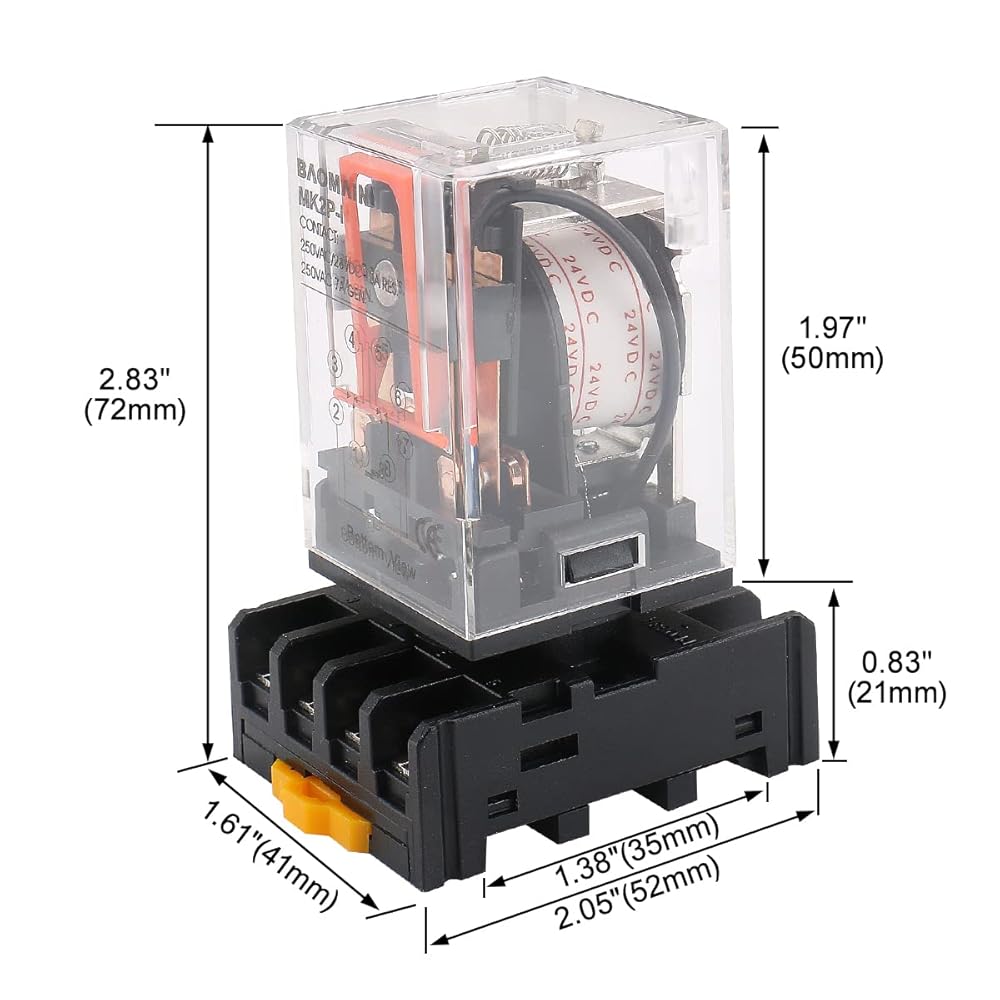 Relay Type: 24VDC Coil, DPDT (2NO 2NC) Power Relay